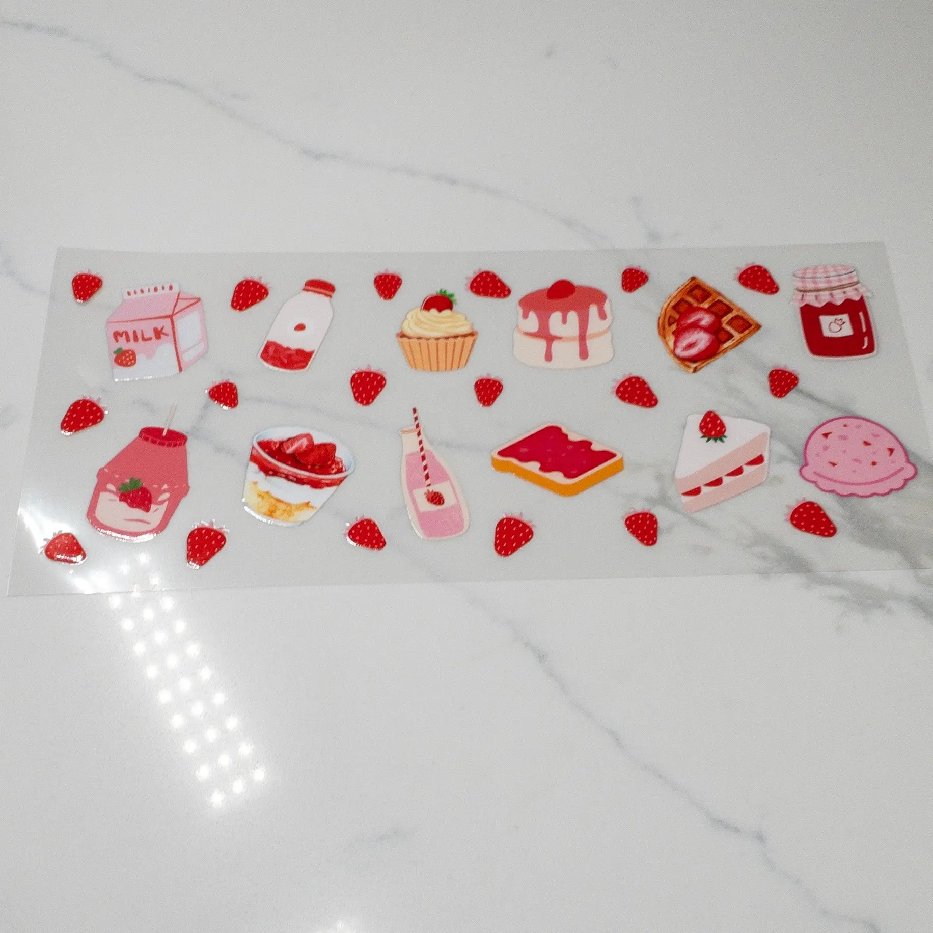 5. Summer STRAWBERRY CAKE UVDTF 16OZ cup Wraps Glass Decal
