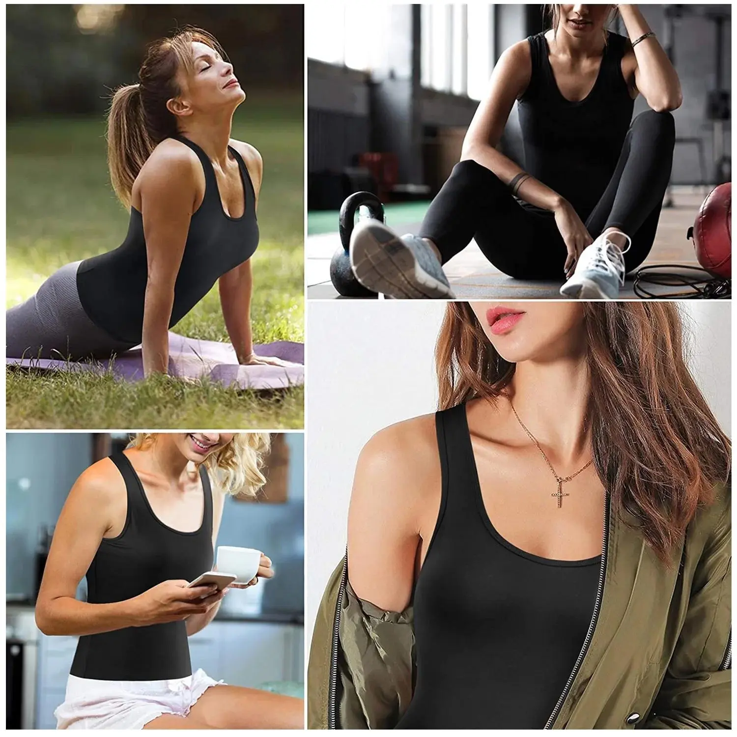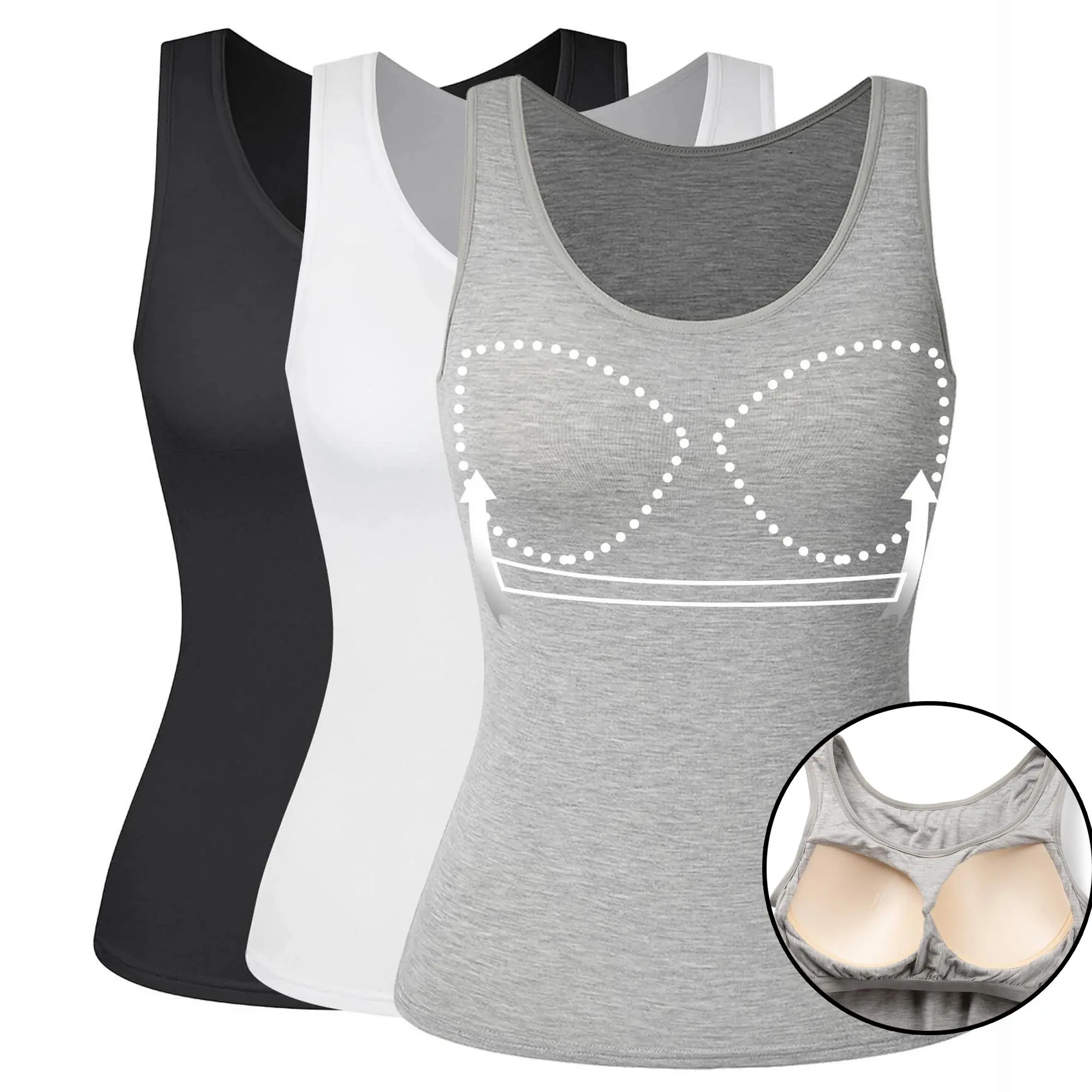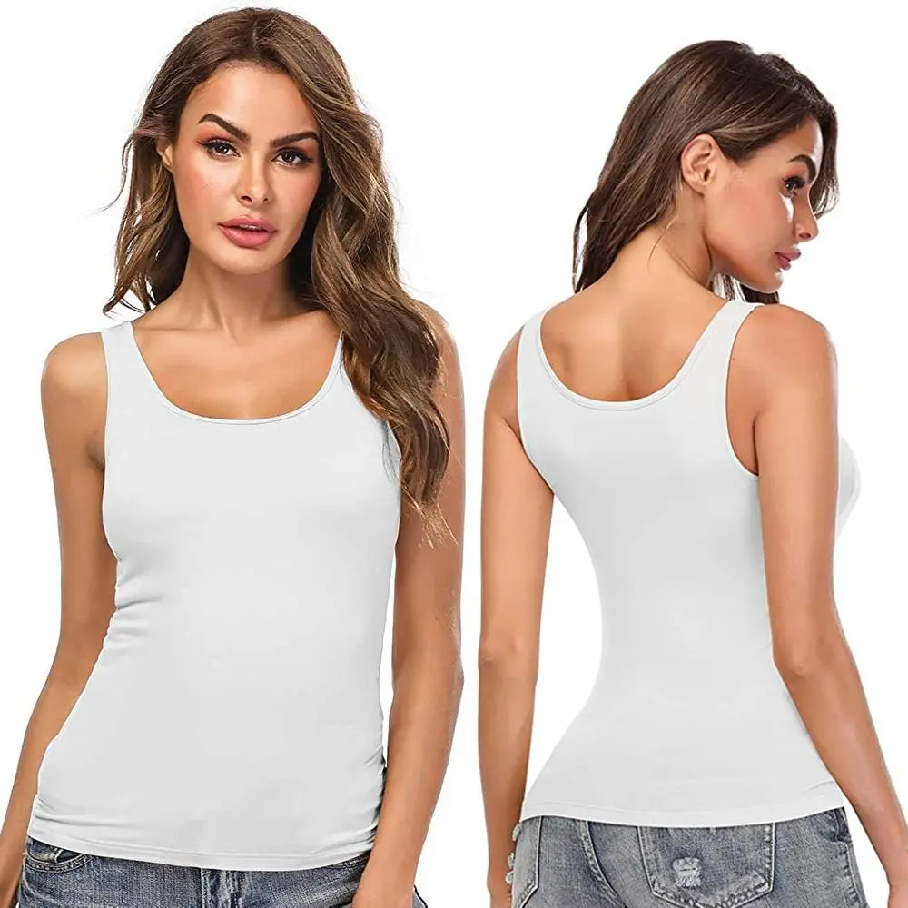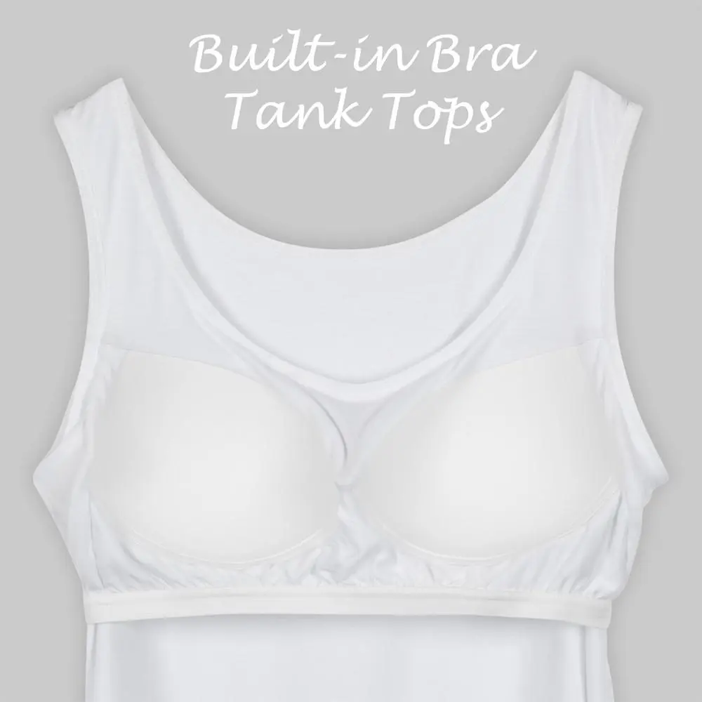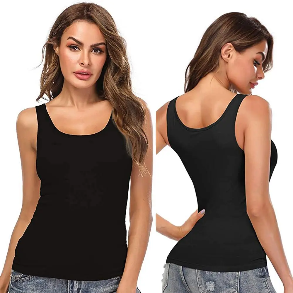 3/2/1 Pack Women's Summer Tank Top with Built In Shelf Bra Wide Strap Camisole Basic Soft Comfortable Padded Cami Tank for Yoga Daily Wear, Scoop Neck Casual Sleeveless Shirt Womenswear Minimalist Lightweight Spandex Black