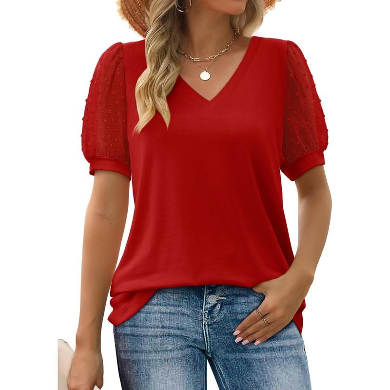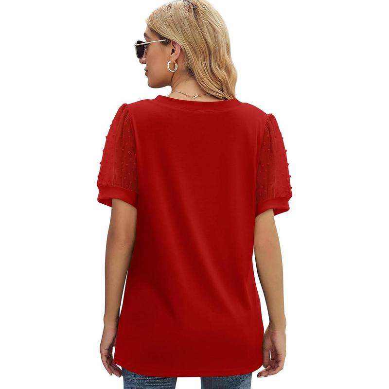 Swiss Dot Puff Sleeve Women's Tops Dressy Casual - Essential Summer T-Shirts