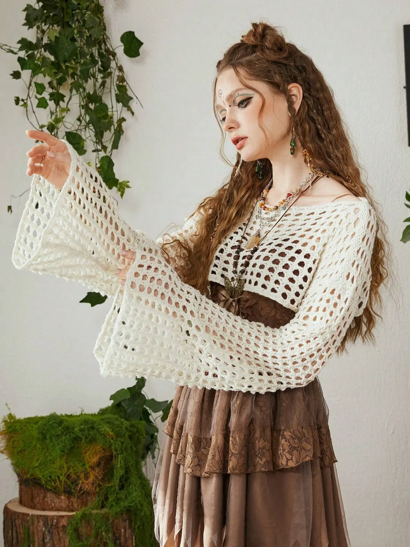 5. Summer Women's Hollow Knit Cropped Pullover Knitwear, Unique Street Style Long Sleeve Sun Protection Top, Elegant and Loose Casual Design