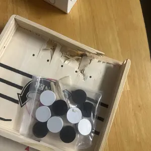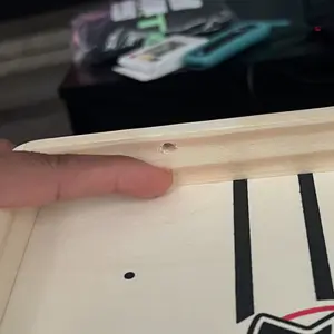 Yo, this thing was cheap! They sent me a board where the holes were more towards the top. The holes should be more toward the floor of the game to be able to shoot the pucks. I couldn’t even use at all! This shop is garbage for sending me garbage! Don’t buy!!! Find another shop to purchase from.