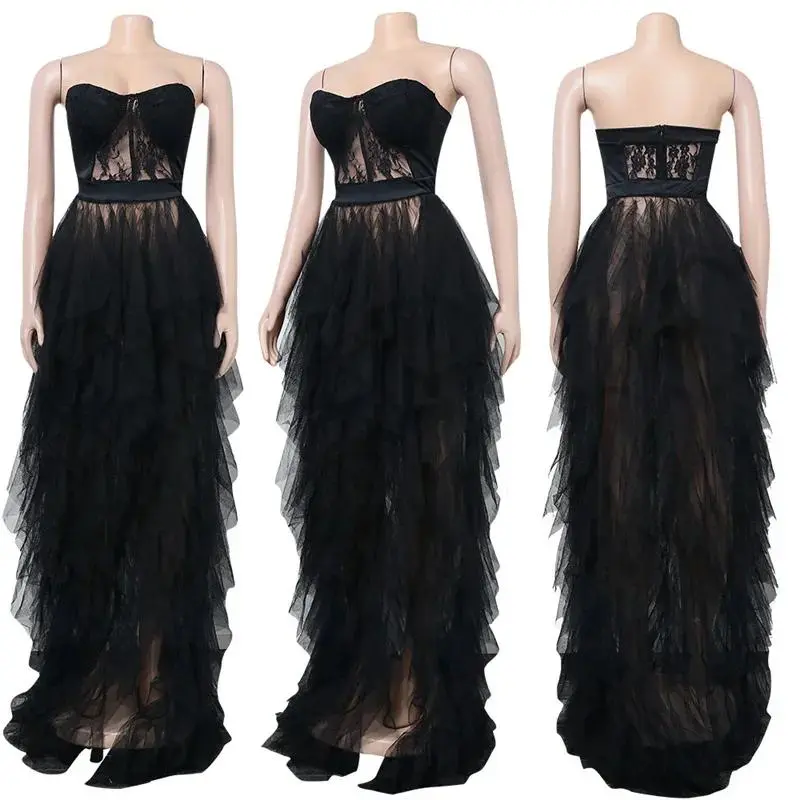 summer work outfit Sexy Tulle Cascading Ruffles Evening Long Dresses for Women Elegant Off Shoulder Strapless Croset Lace Maxi Dress Ball Gown Formal Womenswear