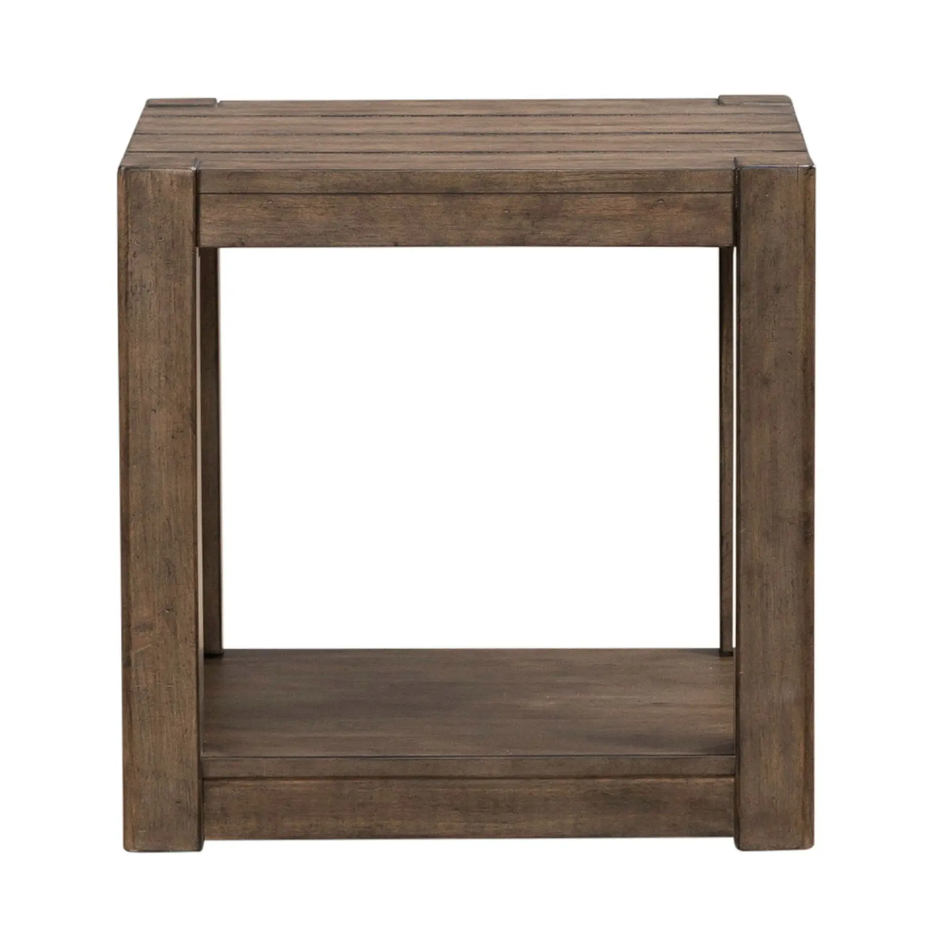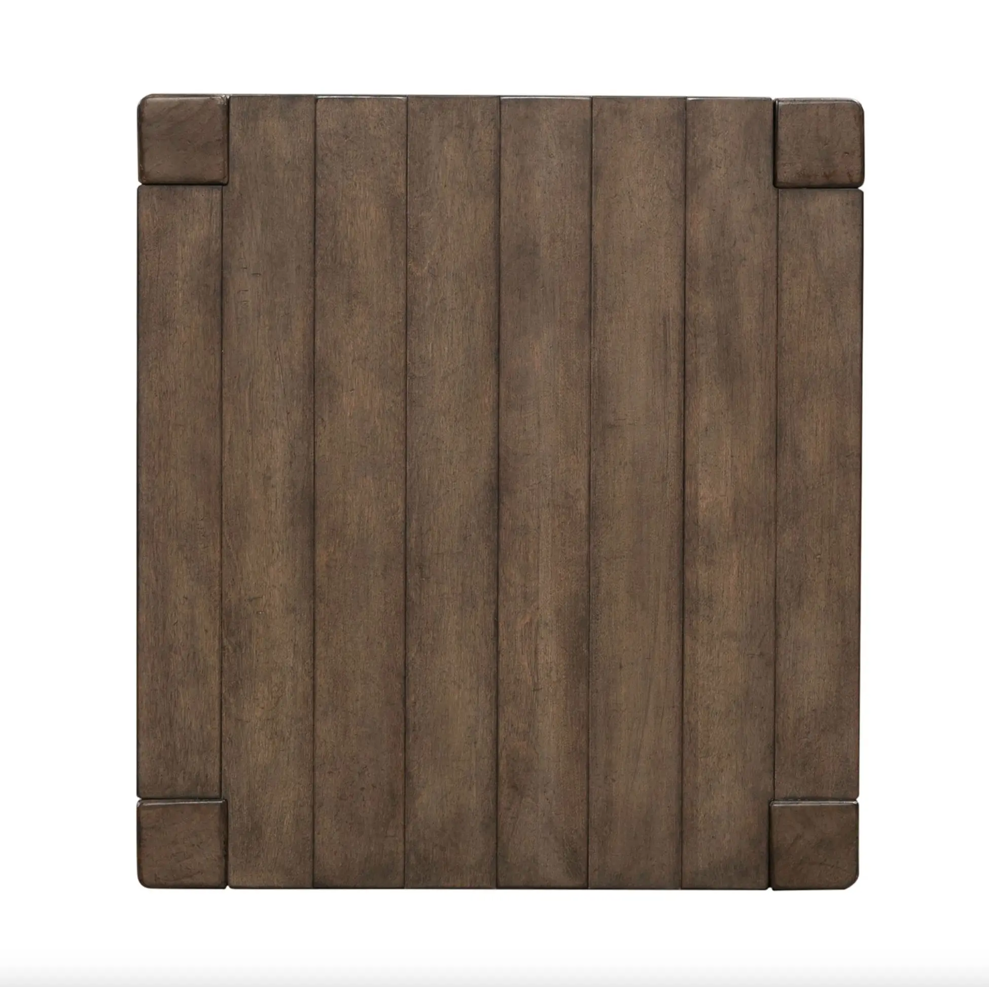 • Square planked top with high-low veneer pattern adds rustic texture and depth