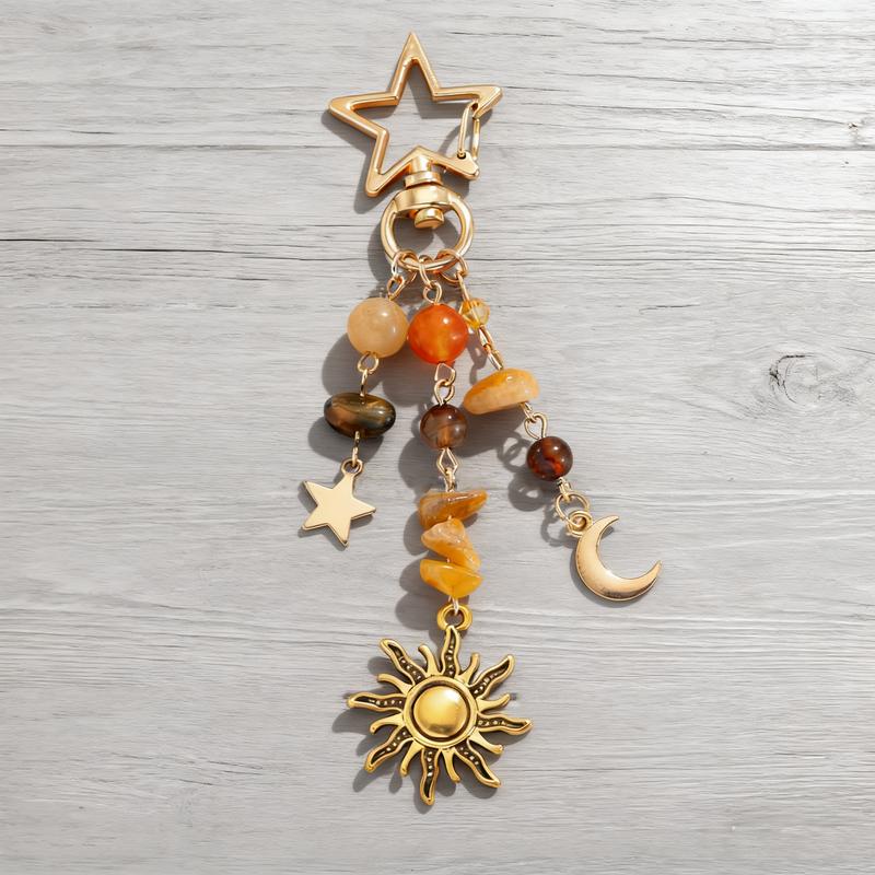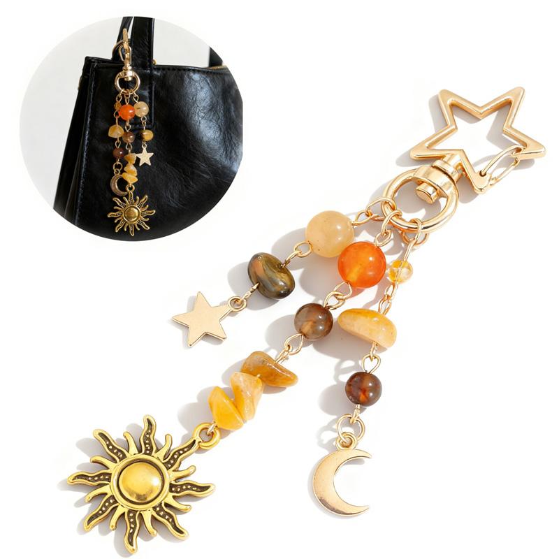 Unique Celestial Design -This keychain features a gold sun, moon, and star with colorful beads. Perfect for adding a Y2K aesthetic and boho charm to your bag, purse, or keys — show off your unique style wherever you go!