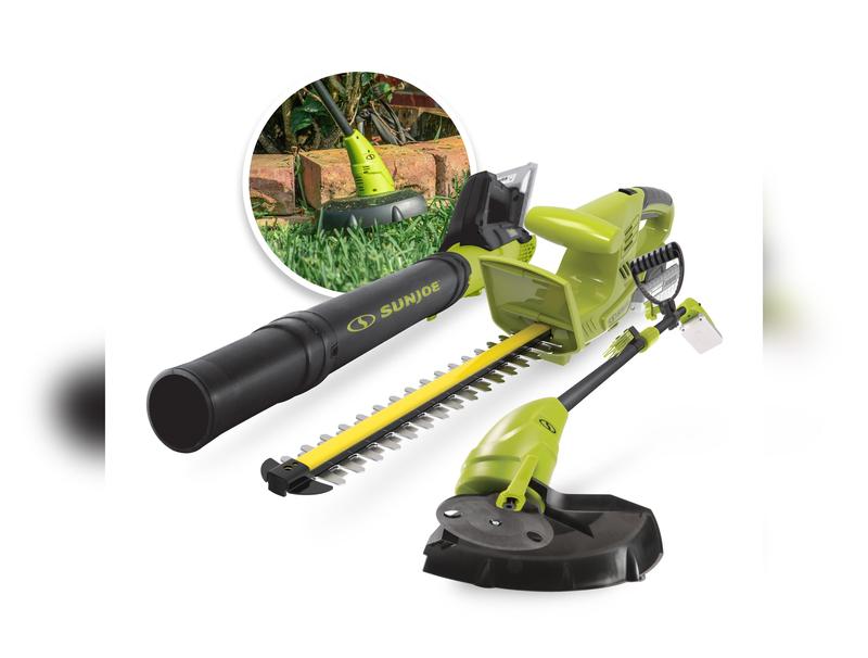 GET YOUR YARD INTO SHAPE! Back-breaking hedge, lawn and leaf cleanups are a thing of the past with the Sun Joe® 24V-GT4MAX-LTE Bundle.