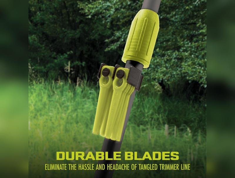·STRINGLESS TRIMMER: 10" SharperBlade™ cuts grass and weeds without tangles or jams (includes 30 blades total)