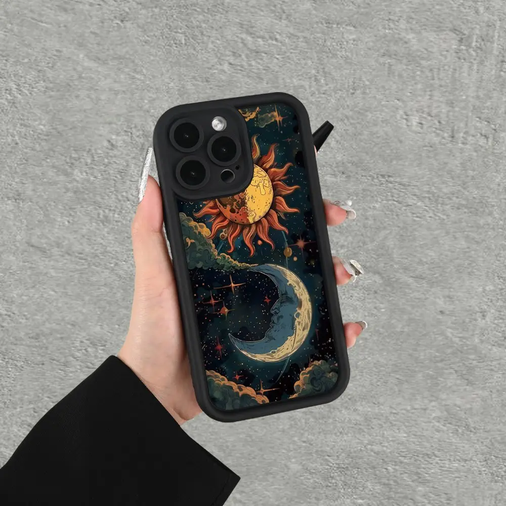Sun and moon pattern TPU Case for iPhone 17 Pro Max 16 16e 15 14 Plus 13 12 Mini 11 Air X XS Straight Edge Drop-Resistant Rugged Durable Cover Shell Valentine's Day Gift 2D printing