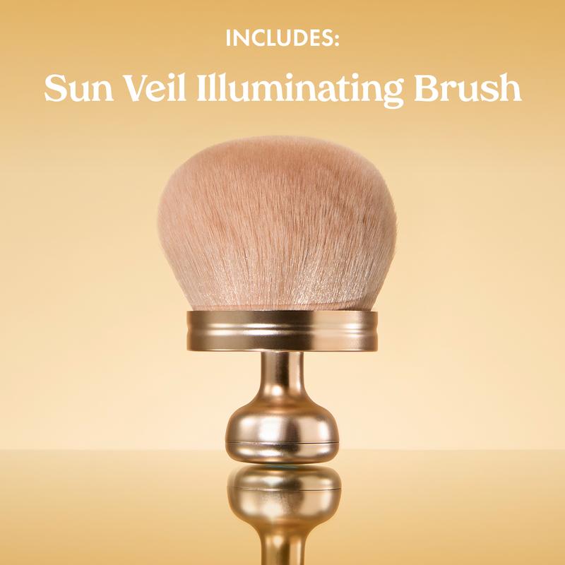 Unveil your most radiant skin with this glow-forward SPF duo made for luminous face and body protection. Sun Veil Illuminating Elixir delivers a silky, serum-like base for the face — hydrating, brightening, and melting effortlessly into skin. Sun Veil Illuminating Sunscreen enhances both face and body with a warm, golden sheen and mineral SPF protection for a soft, sunlit finish. Paired with a plush bronzer brush for smooth, even blending, this set makes radiant, protected skin easier than ever.