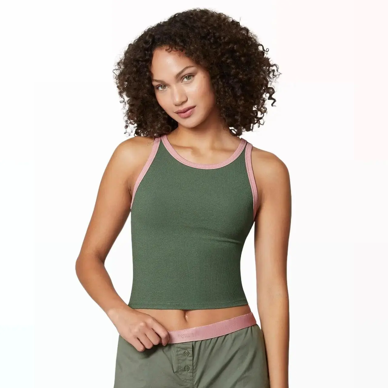·Stylish Design: The high-neck design and color contrast detail make this tank top stand out.