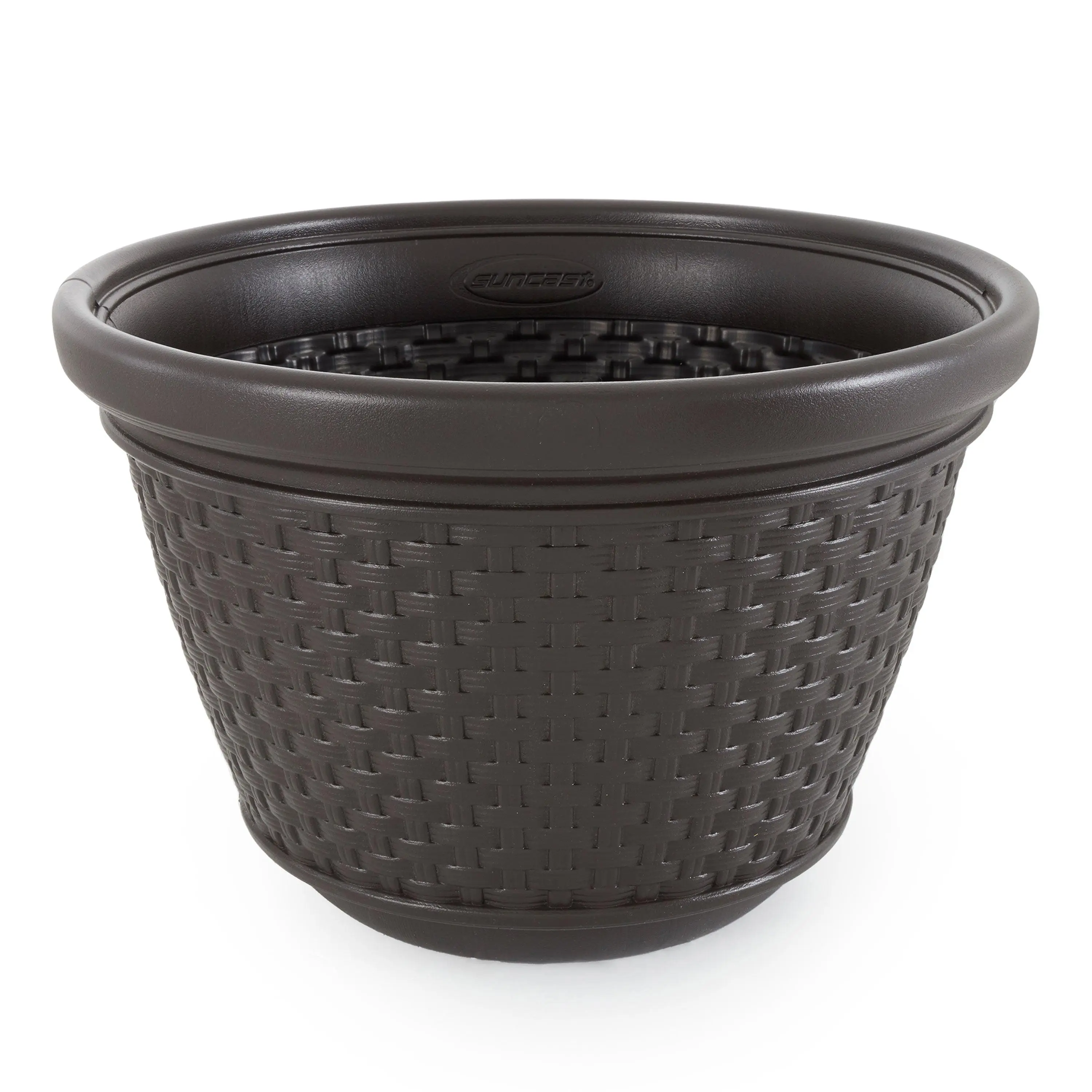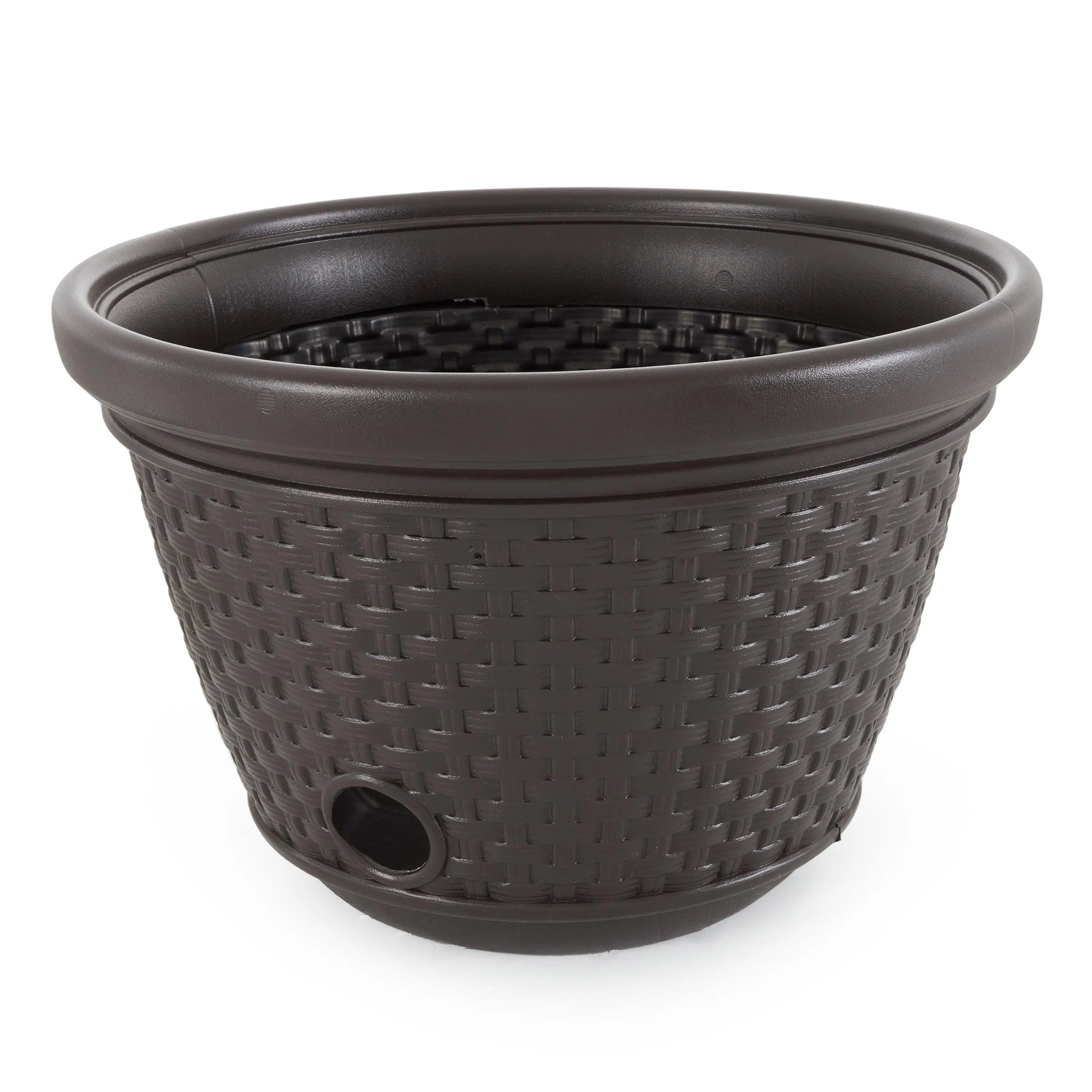 If you're tired of seeing a messy garden hose, then reel it in. Organizing your hose doesn't have to be a task. Keep your hose out of sight, but not out of mind with this 6 pack of attractive wicker pots. The Suncast Resin Hose Pot keeps up to 100-feet of 0.625-inch standard vinyl hose out of sight and conceals standard vinyl hoses. The drain holes in base to release trapped water to protect your hose. The heavy-duty resin construction is easy to maintain, while the lightweight construction makes this pot easy to move around. The classic wicker design is versatile and fits with most decors. This simple and convenient design makes storing your hose easy. This hose pot is designed with a convenient circular opening for hose connection to water supply.