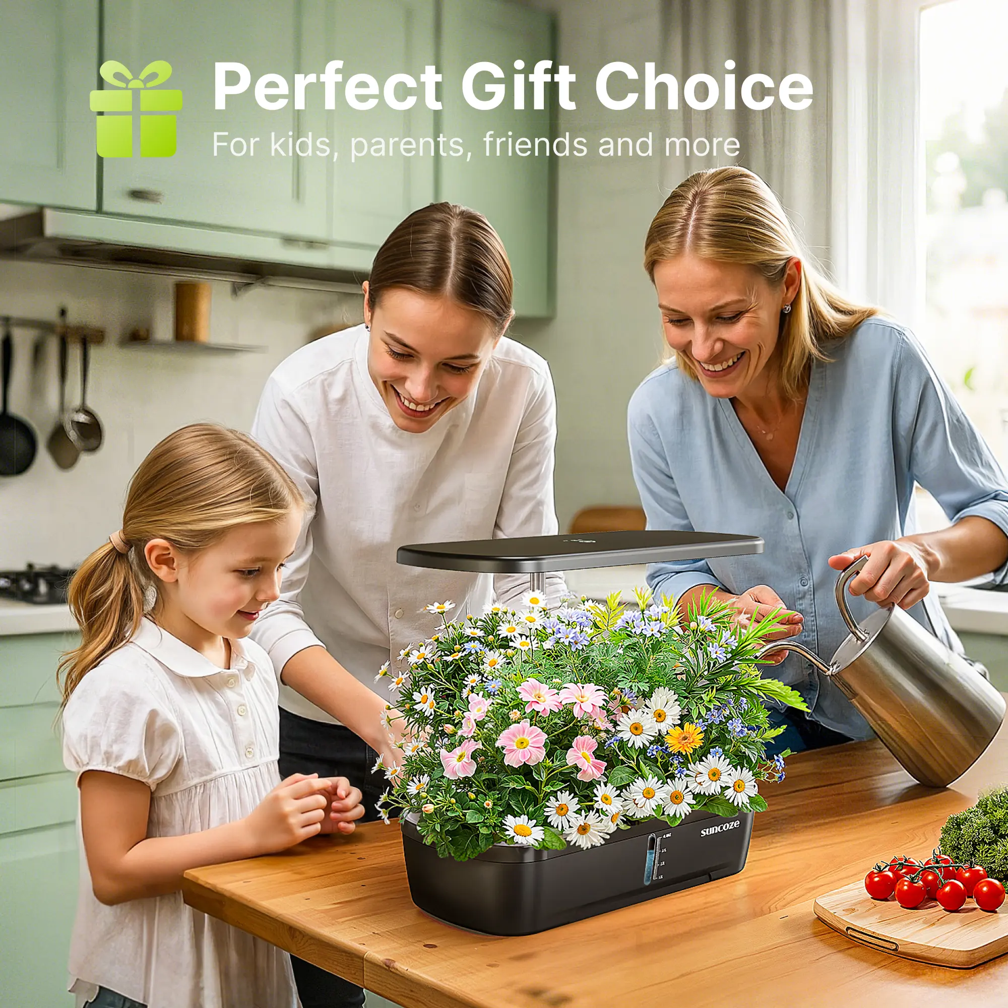 ·【12 Pods & 4L Tank】Compact yet powerful system with 12 pods, 4L visible tank, and a built-in pump (5 min on / 25 min off) to boost root absorption and speed up growth.