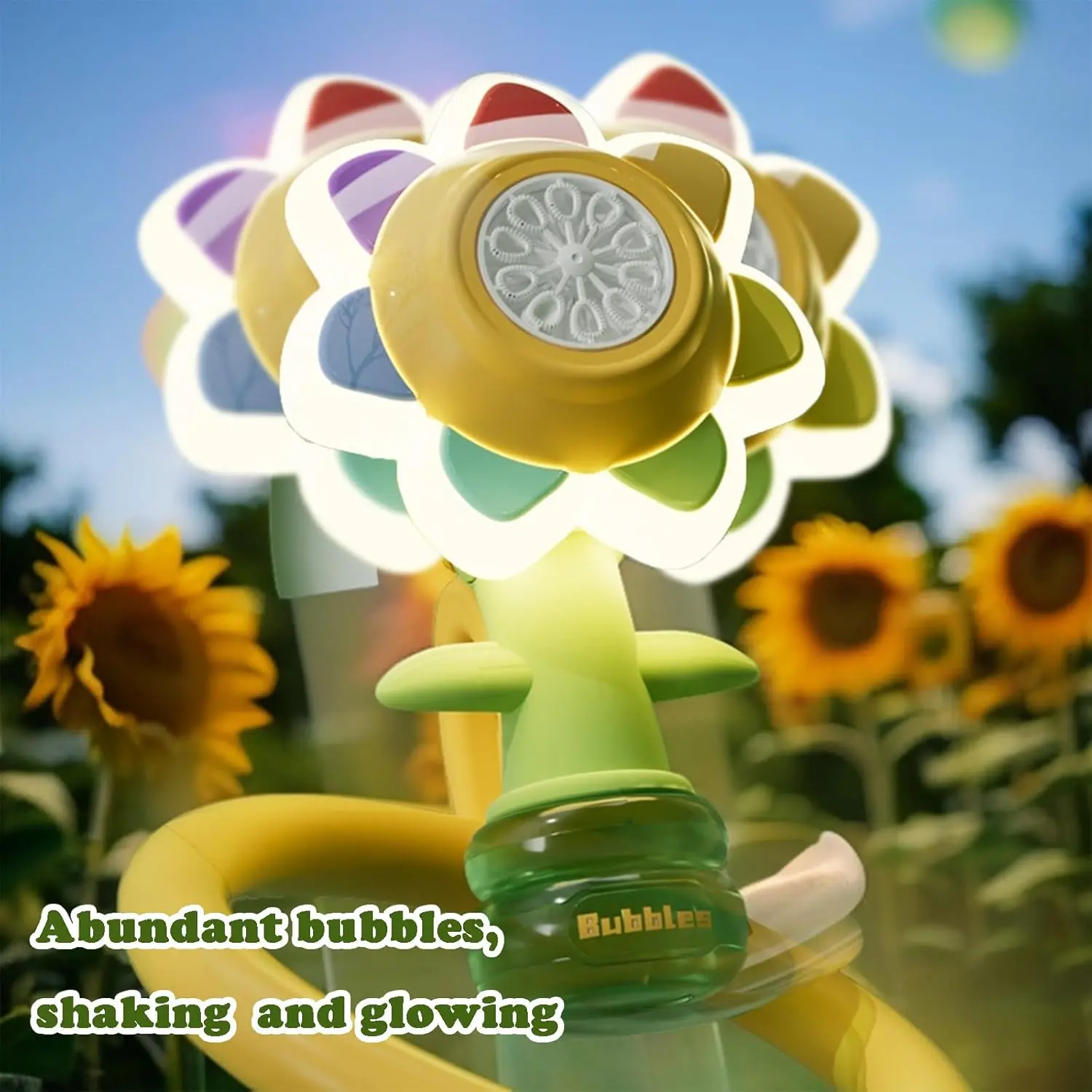 Summer Toy Gift, Indoor Outdoor Birthday Wedding Party Bubble Machine, Colorful Flower Design, USB Rechargeable, Portable Round Shape