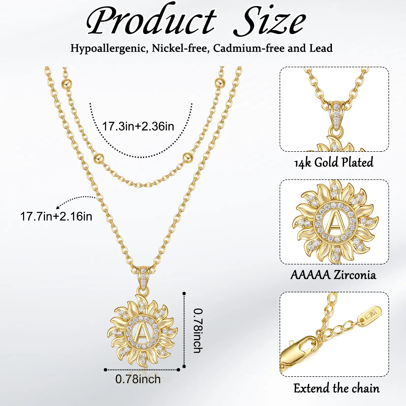Measuring 17.3” + 2.36” with an extender chain, and 17.7” + 2.16” with another extender, this necklace offers adjustable length. Layer it or wear it solo effortlessly. Find the perfect fit with ease, ensuring both style and comfort.