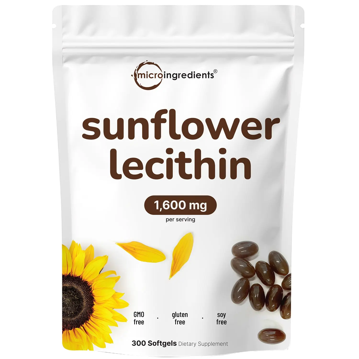 ·Micro Ingredients offers extra strength Sunflower Lecithin softgels, a bulk 300 count supply with a serving size of 2 softgels, provides 1,600mg sunflower lecithin with 240mg phosphatidylcholine.