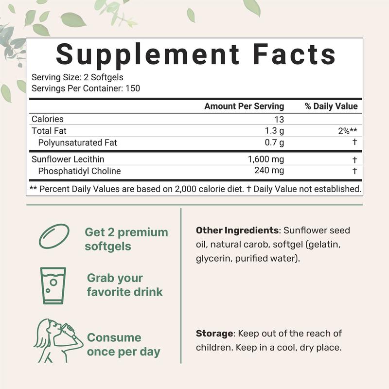 ·Enjoy high concentrated cold-pressed sunflower lecithin that is sourced from sustainably farmed ingredients and offers a pure soy-free formula.