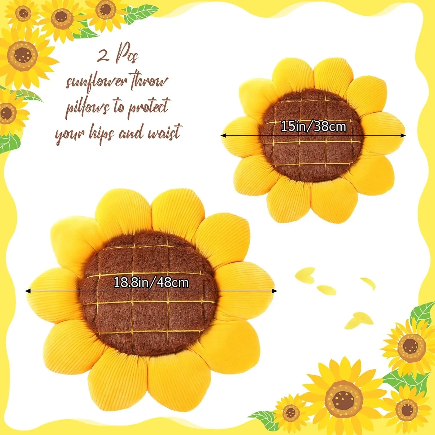 Cute and Lovely Design: these yellow chair cushions adopt realistic sunflower designs, cute and lifelike, the middle part is the disk of sunflower, surrounded by leaves beside, nice and beautiful, adding more color to your home when you place it on your bed, sofa and more.