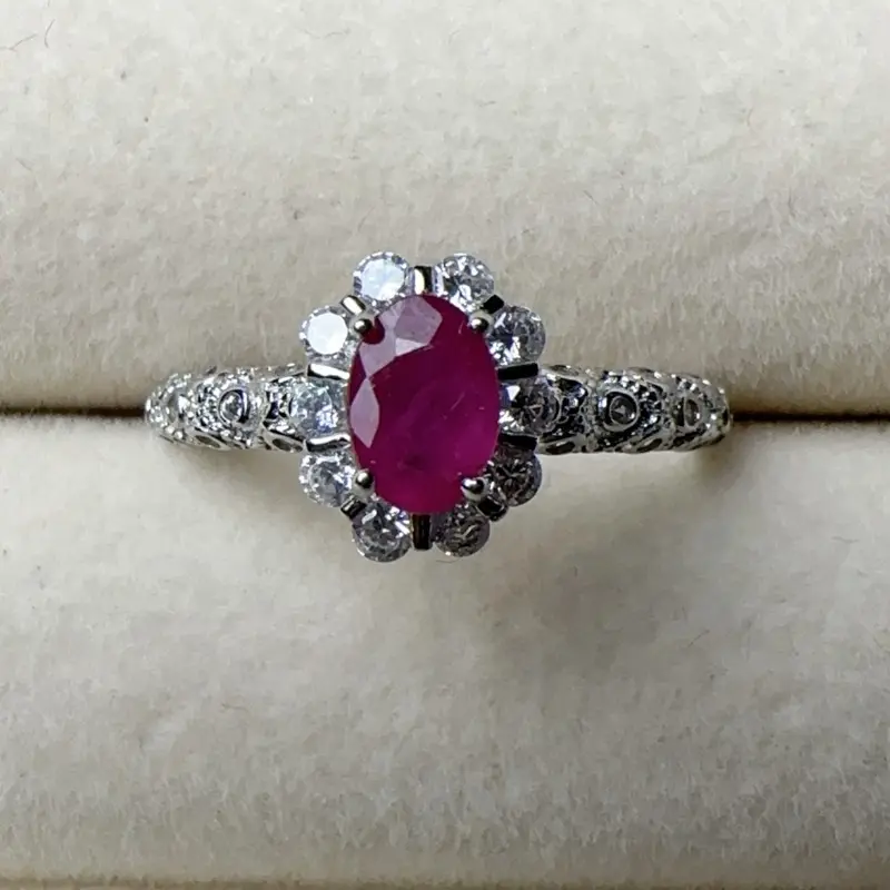 5. <PingEast jewelry > Ruby ring506——925 Sterling Silver Sunflower Ring with Natural Pink Burmese Mogok Ruby