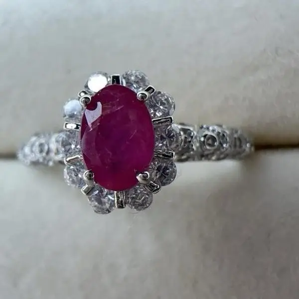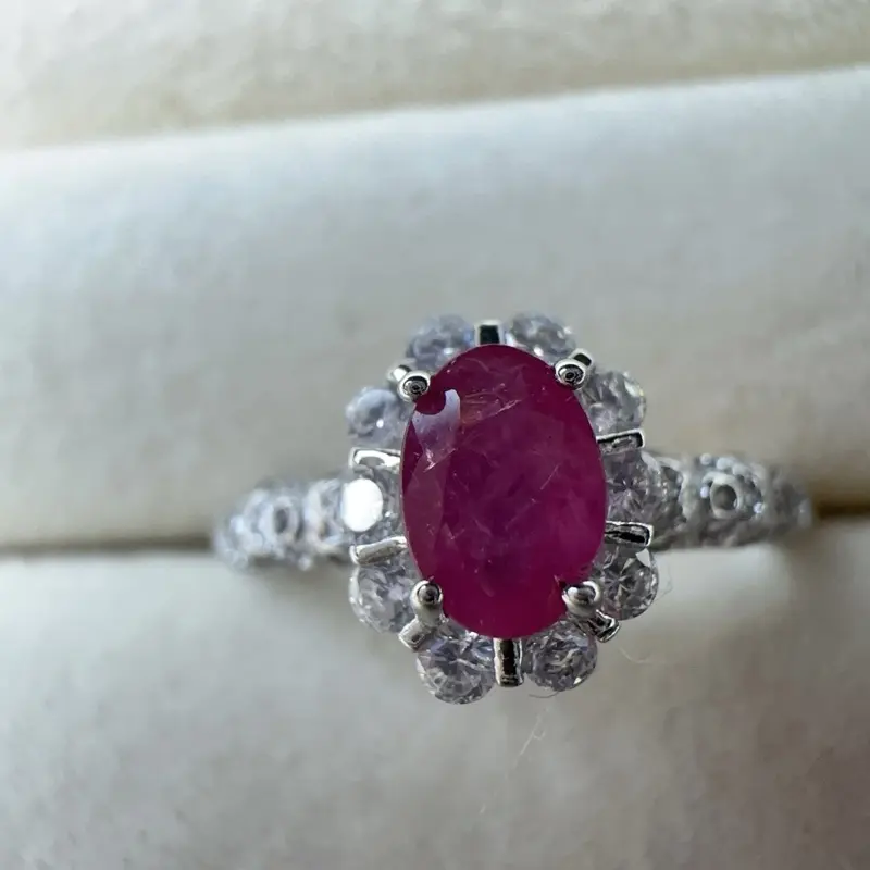 925 Sterling Silver Sunflower Ring with Natural Pink Burmese Mogok Ruby