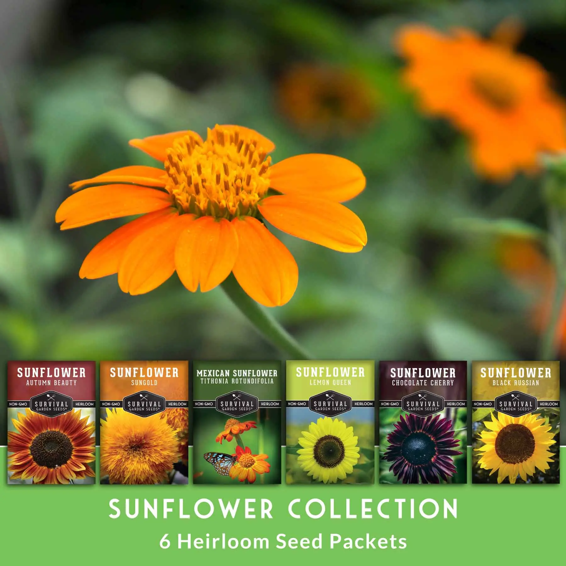 Assorted Colors & Sizes - This collection of seeds has 6 stunning varieties of sunflower to add beauty and color to your life. Plant Autumn Beauty, Dwarf Sungold, Lemon Queen, Chocolate Cherry, Black Russian, and Mexican sunflowers in your yard or garden