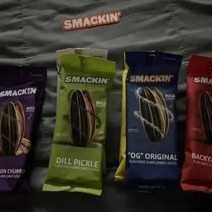 ·GET SMACKIN': The classic sunflower seed reimagined with bold flavors, jumbo sunflower seeds and no more salty burn. Every small-batch of hand crafter sunflower seeds is coated in gourmet seasoning and finished with a signature roast.