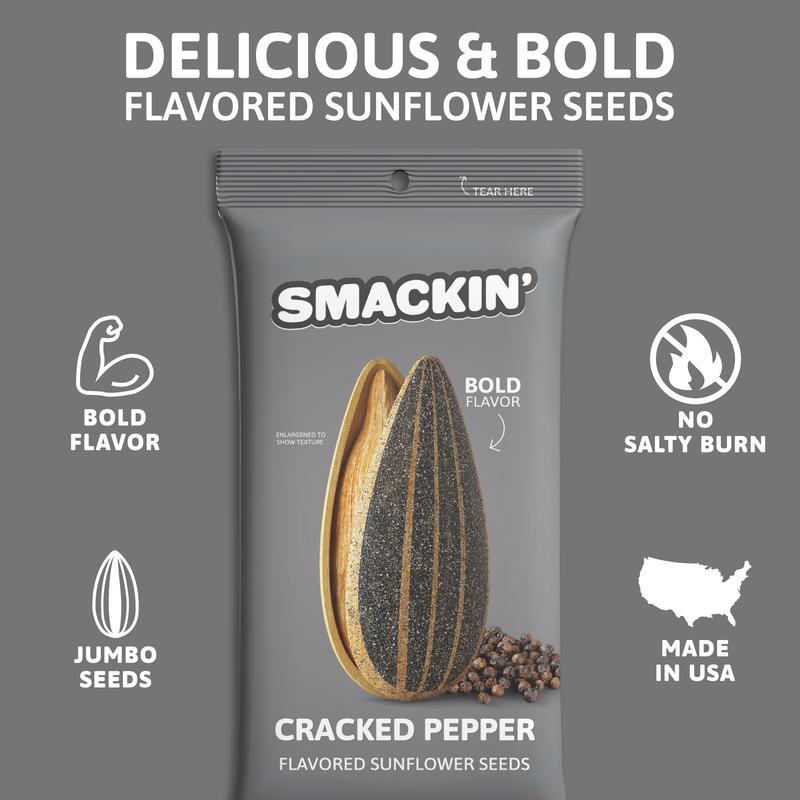 ·GET SMACKIN': The classic sunflower seed reimagined with bold flavors, jumbo sunflower seeds and no more salty burn. Every small-batch of hand crafter sunflower seeds is coated in gourmet seasoning and finished with a signature roast.