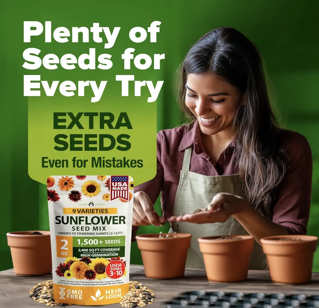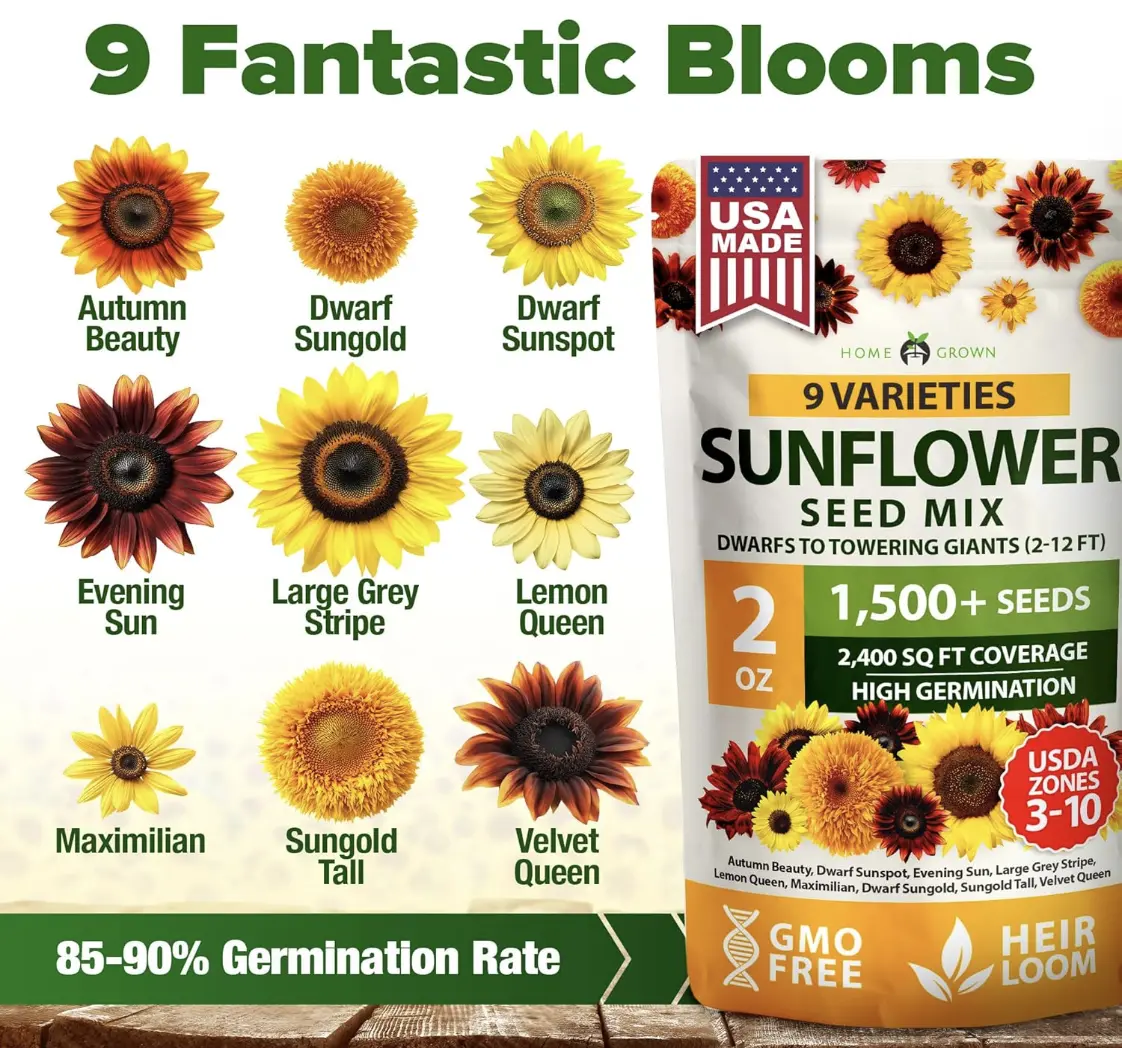 Transform your garden with 1508 sunflower seeds! This vibrant mix includes tall and dwarf varieties that add color, height, and pollinator support to any space.