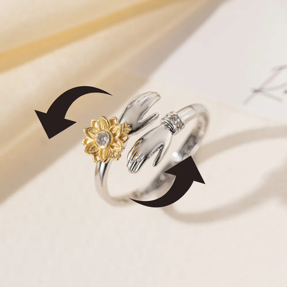 ✨ Elevate Your Style with the Sunflower Spinner Worry Ring! This hand-hug fidget ring is a perfect accessory for women, girlfriends, and daughters. It's more than just a ring; it's an inspirational piece of jewelry. The ring comes with a free gift box, making it an ideal gift. Embrace the "You Are My Sunshine" message with this charming ring.