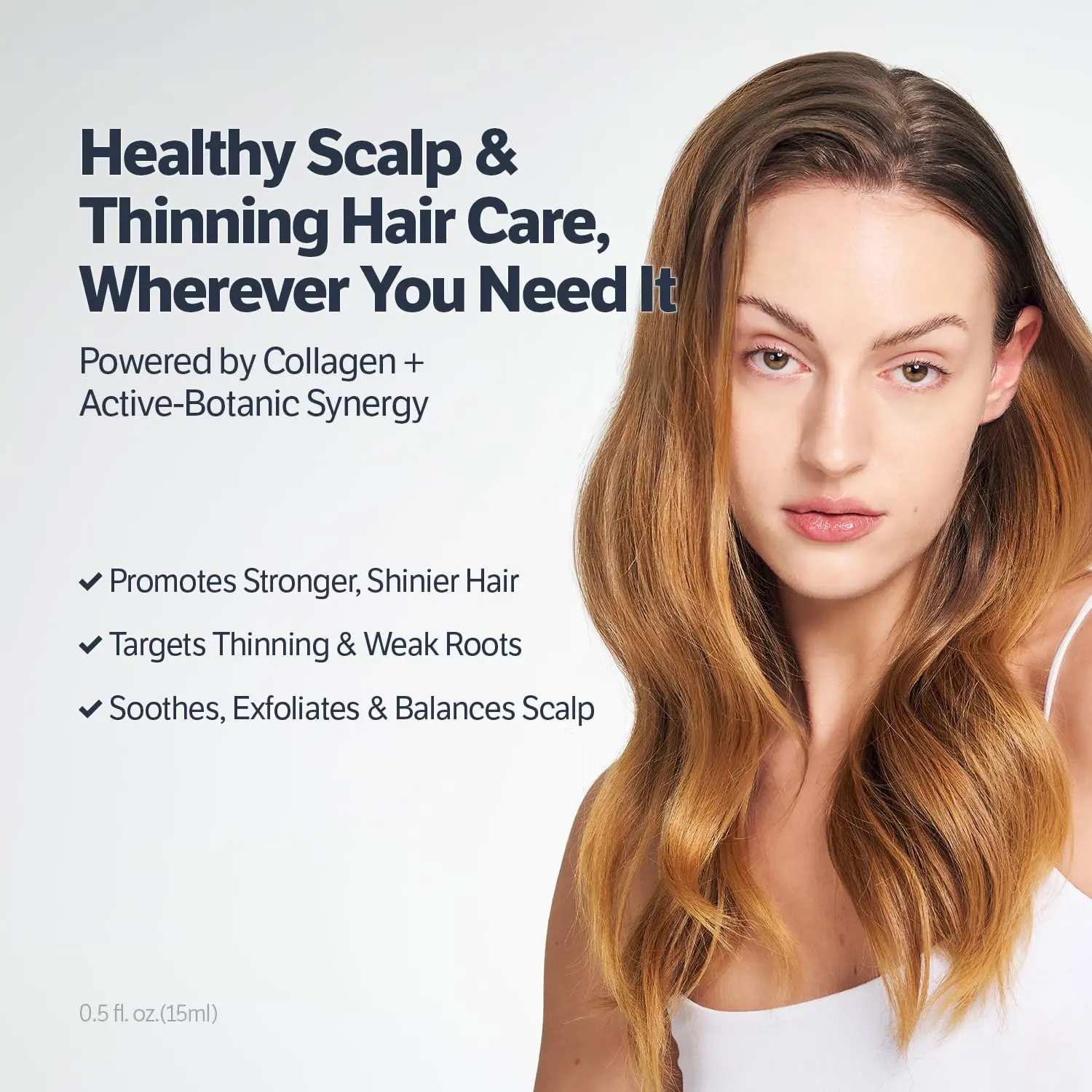 Advanced hair growth serum combines collagen, peptides, caffeine, and biotin. It fortifies roots, shrinks scalp pores, and promotes thicker, fuller hair. This is your go-to scalp treatment for lasting results.
