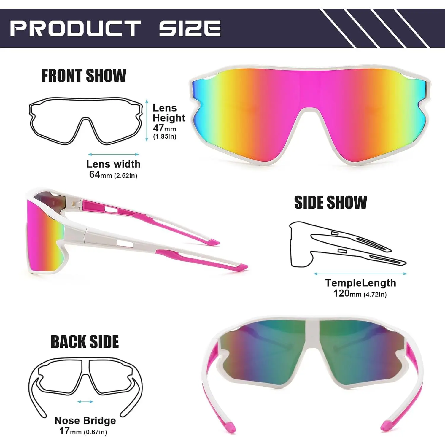 These sunglasses were just as described. Good quality and they fit well. The shipping was pretty quick and they even came with a little bag and cloth to keep them clean. I love them!