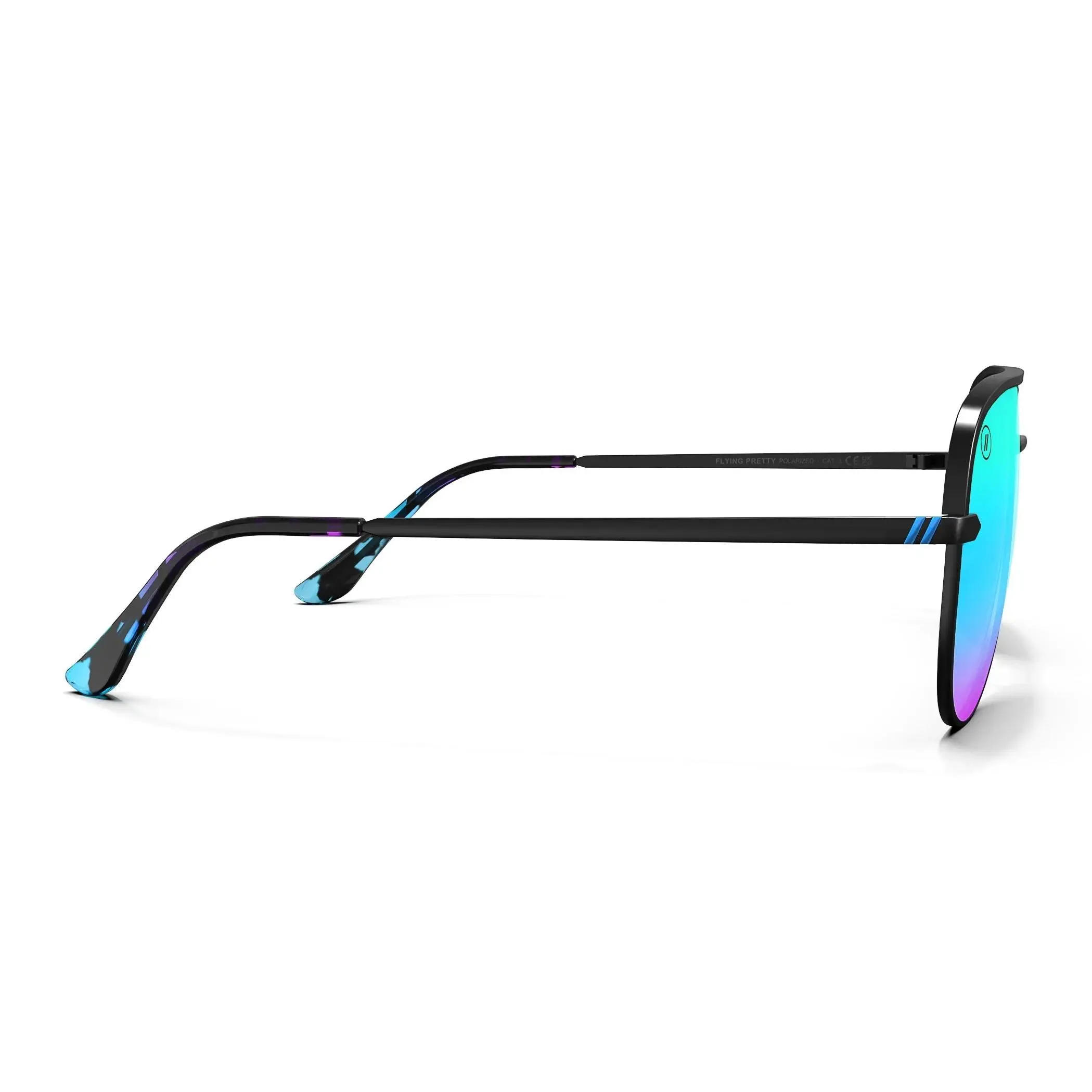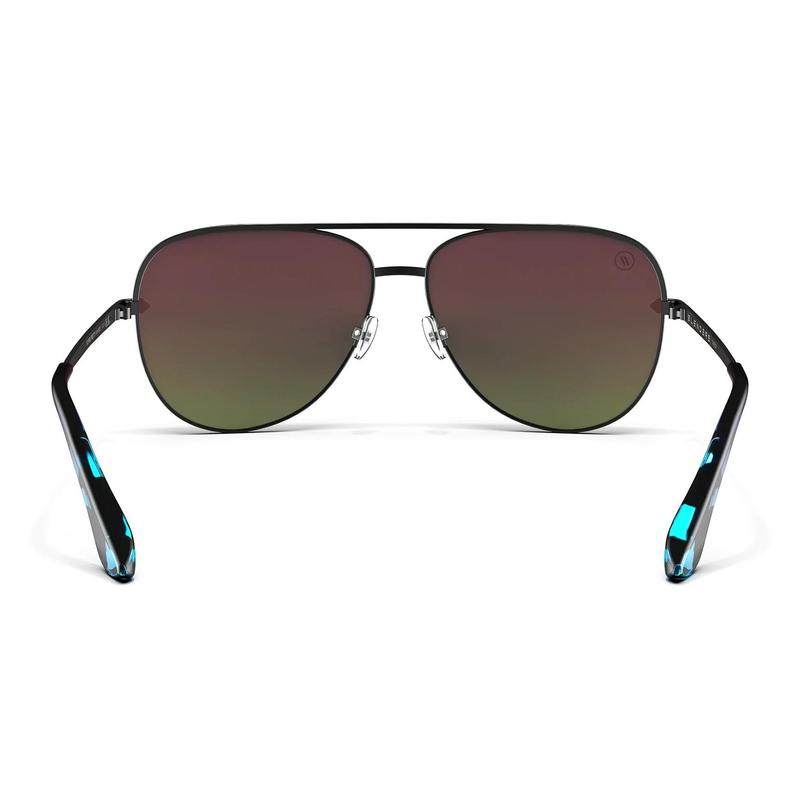 The Flying Pretty aviator sunglasses from Blenders Eyewear are designed to elevate your style with their bold and vibrant aesthetics. Featuring a matte black frame, polarized purple and blue mirrored lenses, and tortoise-printed temple tips, these sunglasses offer both fashion and functionality.