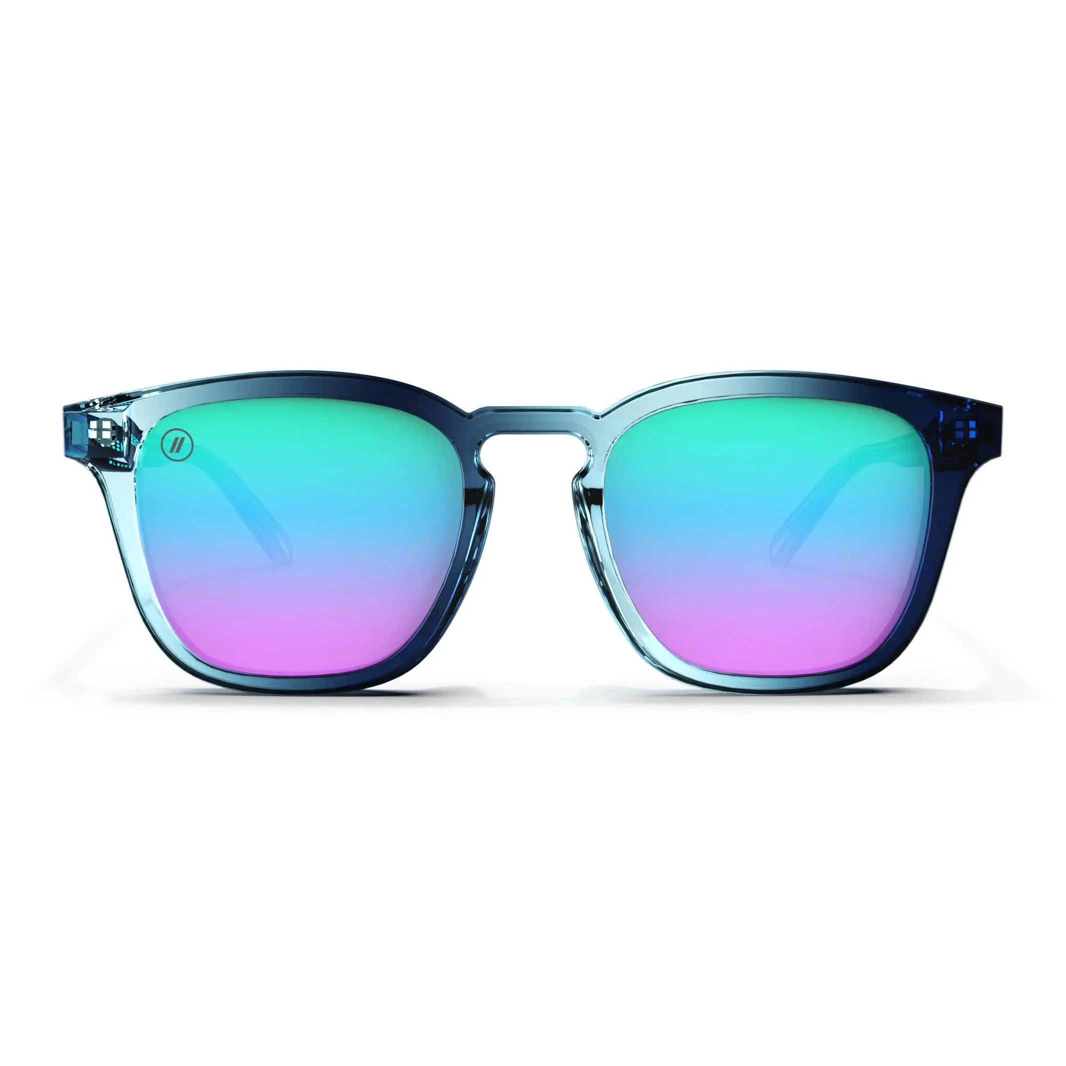 Blenders Sydney Rain Dance Sunglasses – Polarized Blue & Purple Mirror Lenses, UV400 Protection, Scratch-Resistant, Gloss Navy & Light Blue Fade Frame, Medium-Large Fit