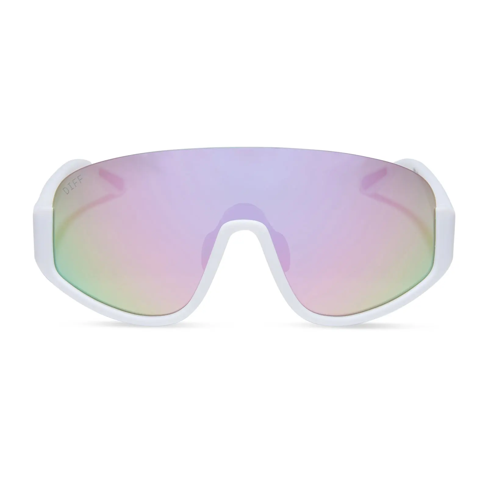 ✨ Elevate your style with DIFF Blazer Sport Sunglasses! These matte white frames feature lavender mirror polarized lenses. Perfect for any occasion, these shades offer a bold, futuristic look. 🌟