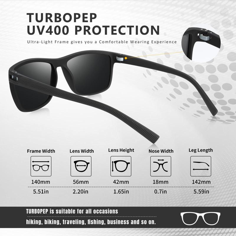 Protect your eyes with TURBOPEP HD polarized sunglasses featuring advanced TAC lenses. Our lenses restore true color, reduce eye damage from UVA and UVB rays, and minimize glare-induced distractions and temporary blindness. Experience brighter scenes and more vibrant colors with enhanced clarity.
