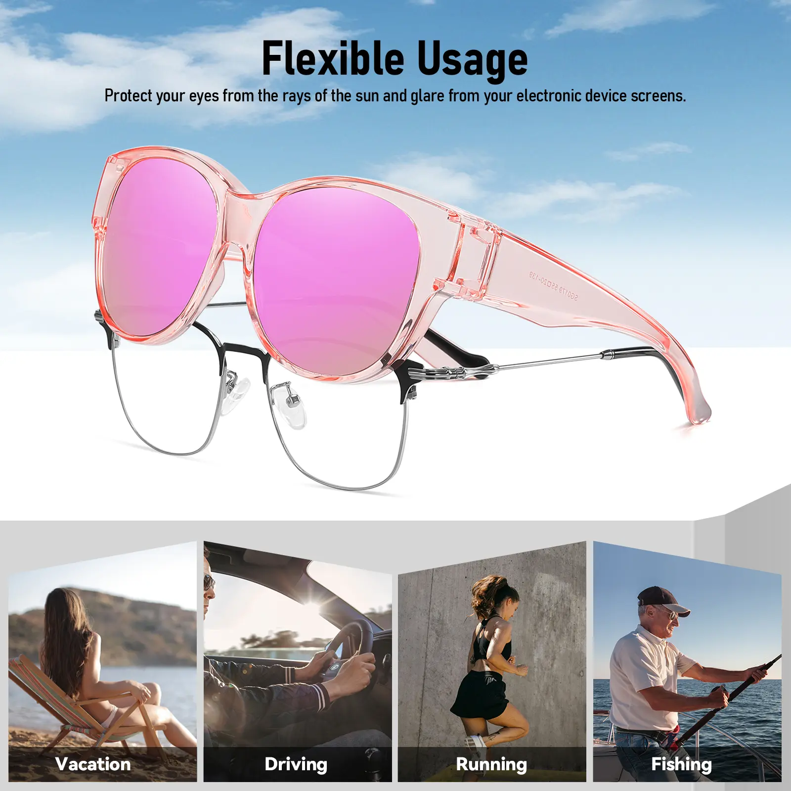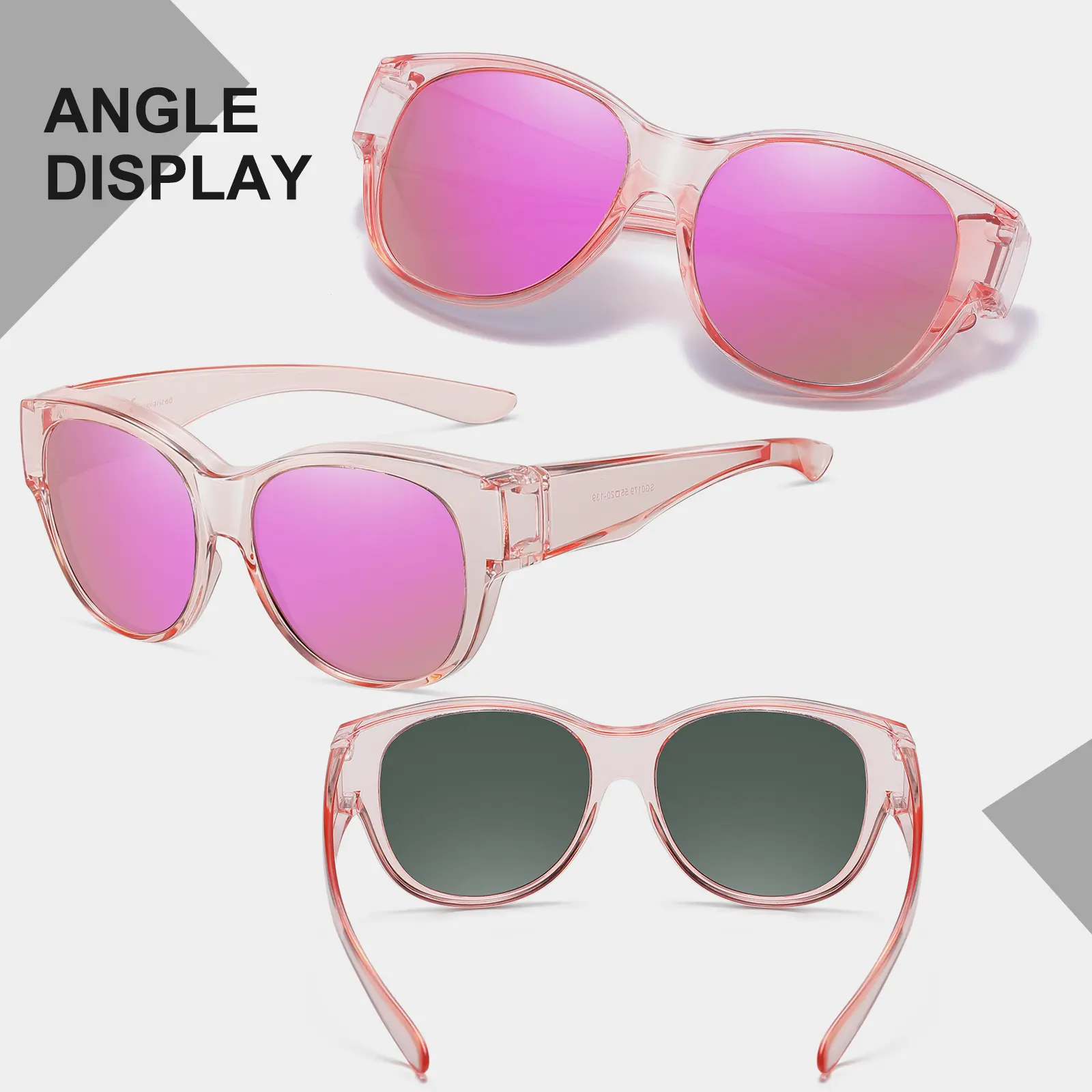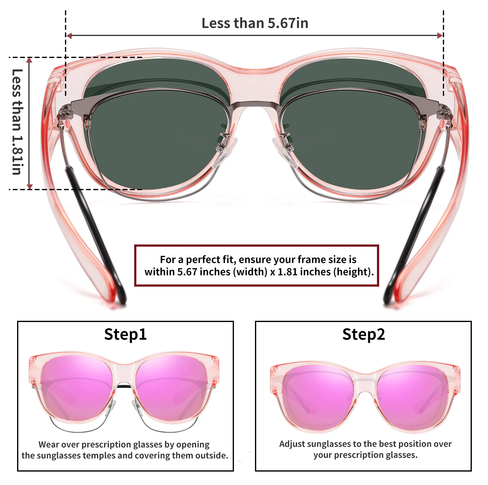 LARGE OVER GLASSES SUNGLASSES FOR WOMEN: The womens fitover sunglasses are specially designed for those who have to wear prescription glasses outdoors and don’t like to wear clip-ons but want to have protection from harmful UV rays from the sun. Polarized sunglasses fit easily over regular glasses and you can take them off anytime