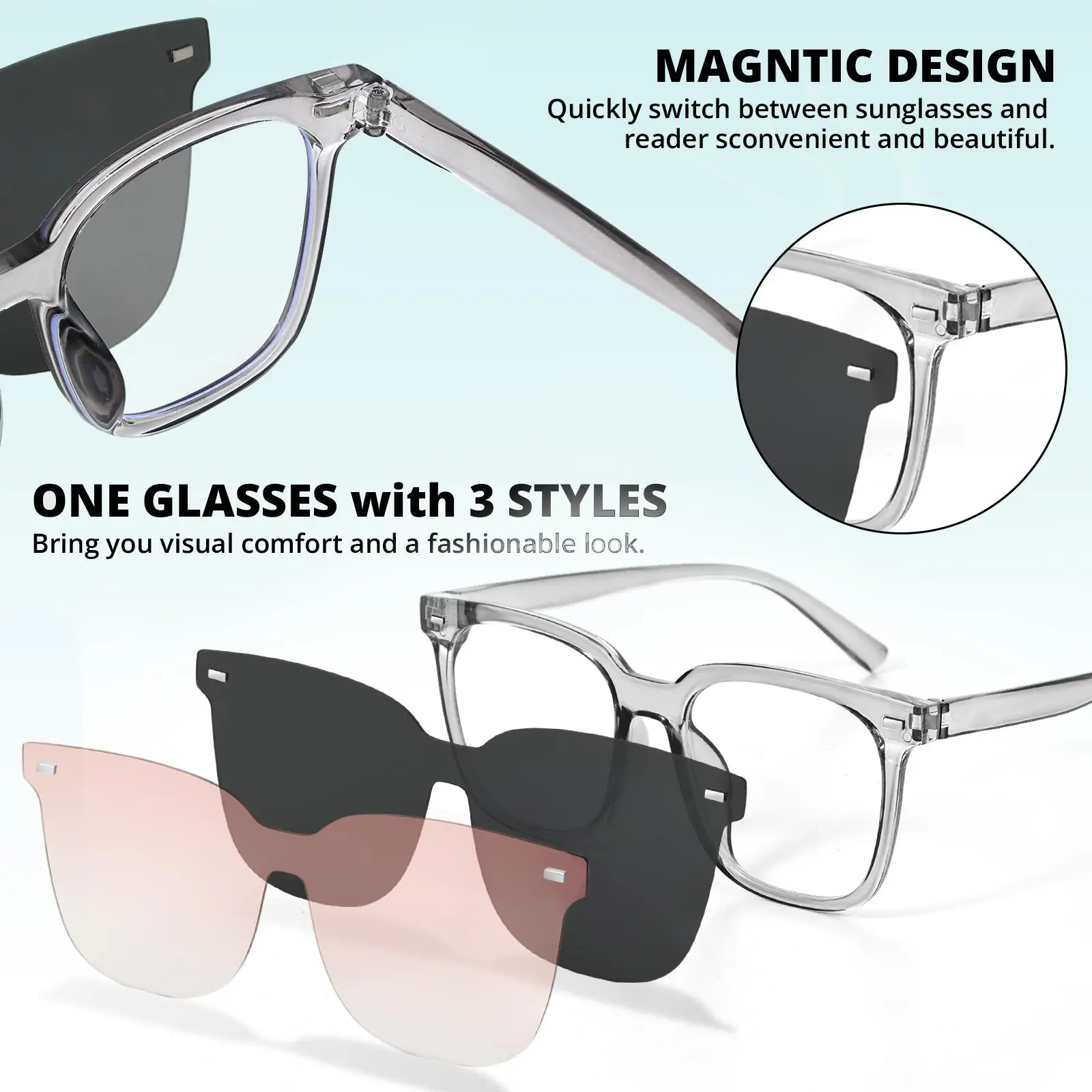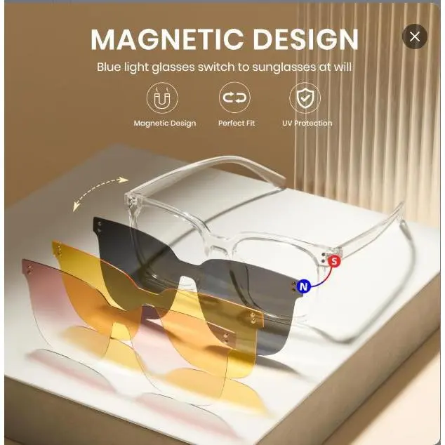 ·【Different Lenses & Multiple Scenes】Transparent anti-blue light lenses are suitable for daily work, and magnetic sunglasses are suitable for outdoor activities. Help us switch freely in our work and life.