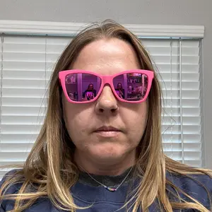 Super cute! Absolutely love the color! I also love that these glasses donât move on your face. Most glasses/sunglasses I have to constantly have to keep pushing up on my nose.