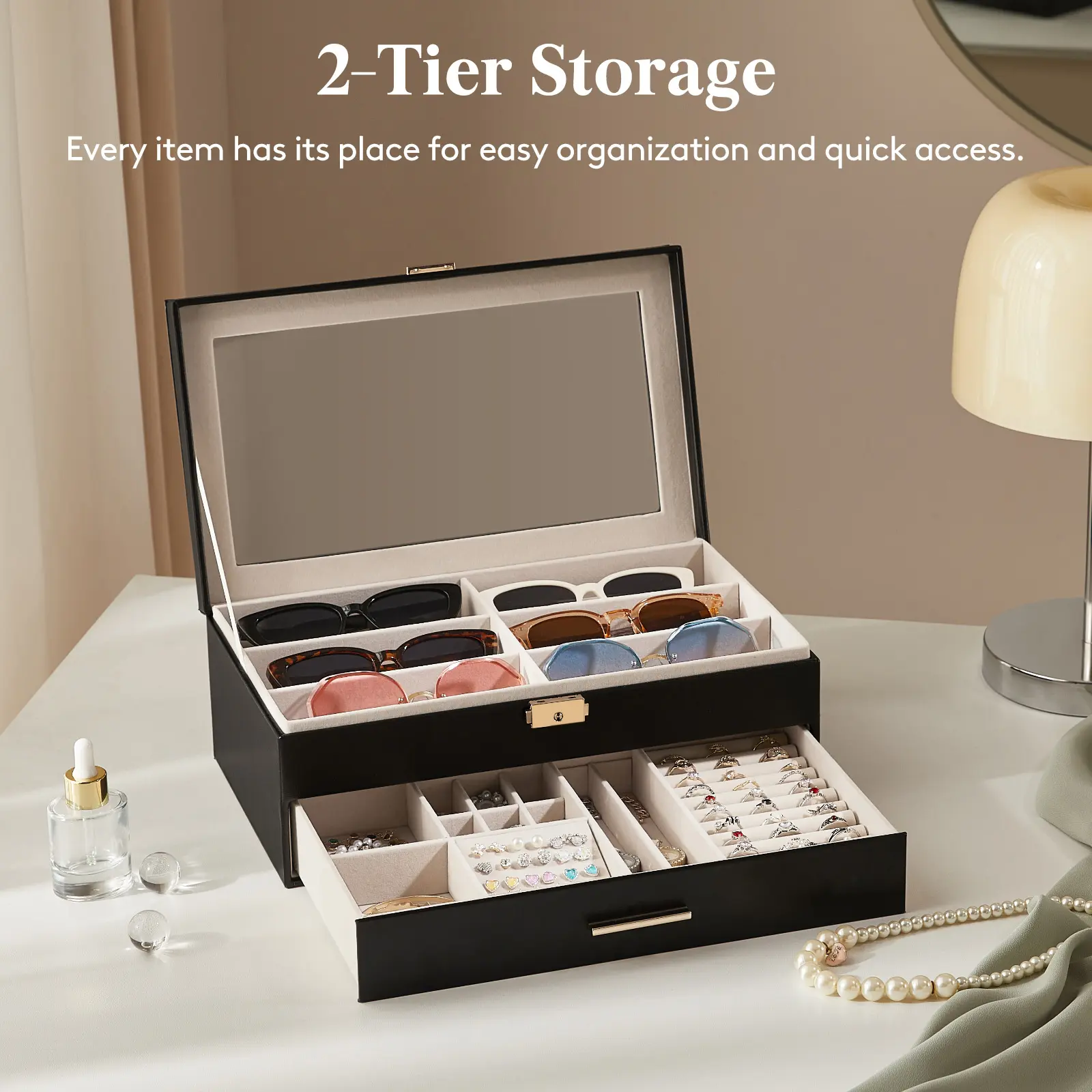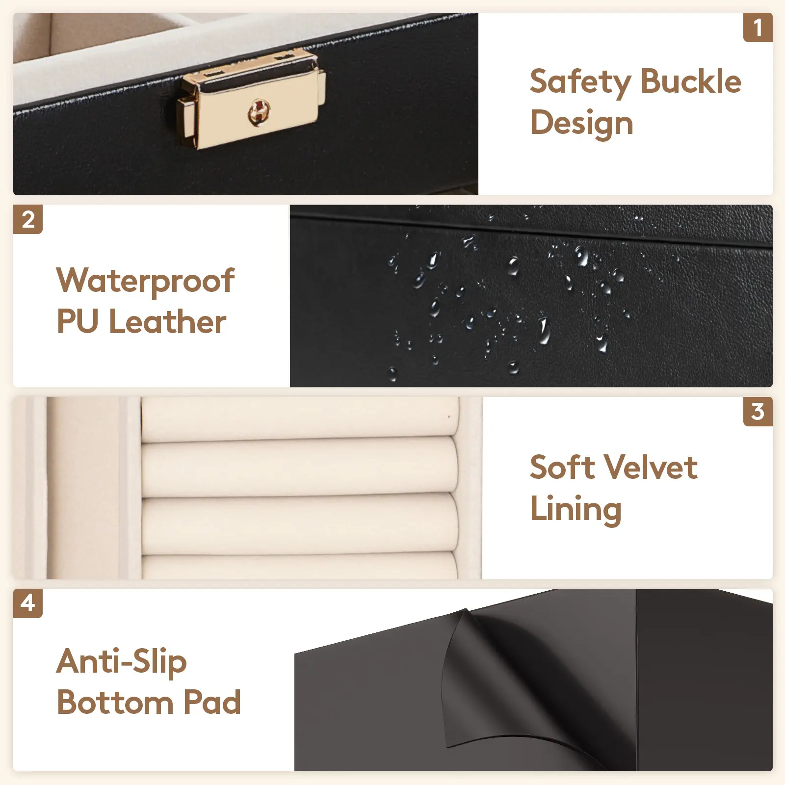 ·Compartments: Double-layer design; top layer with 6 compartments and removable dividers, bottom layer suitable for jewelry, watches, rings, and other small items