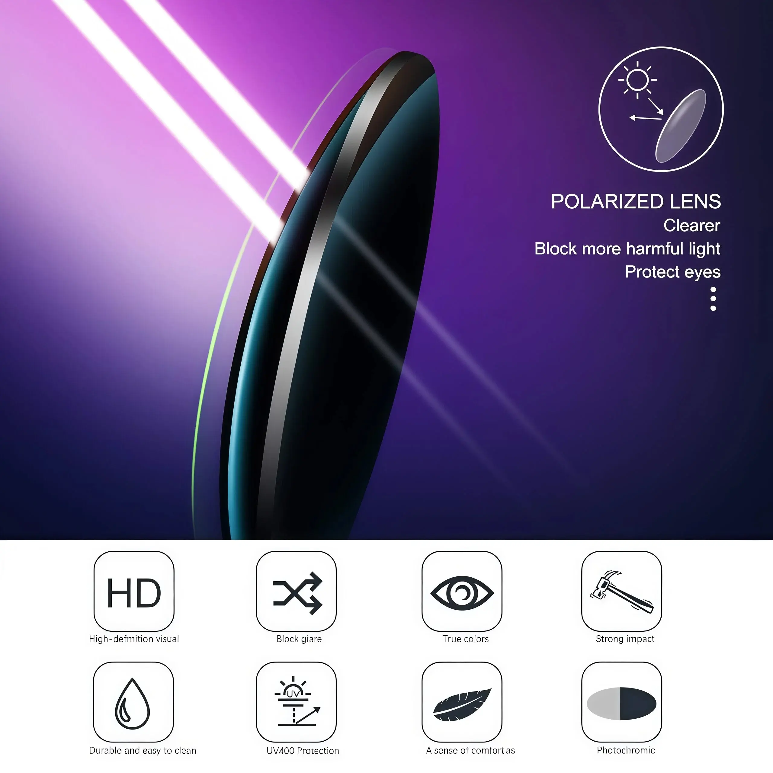 ·Photochromic Lenses: Our photochromic lenses automatically change color depending on the intensity of the sunlight. Indoors, you can wear it as regular glasses. Outdoors, you can use it as sunglasses. For people who don't like to put on and take off sunglasses frequently, Paleshy photochromic sunglasses can be the perfect solution to this problem.