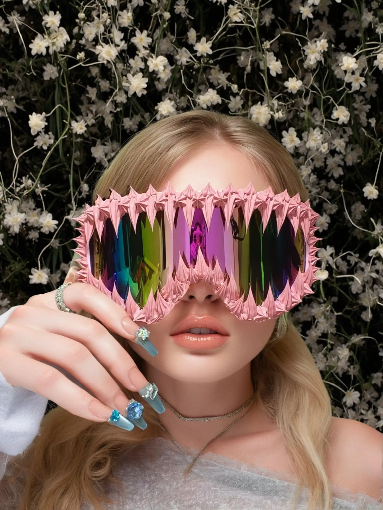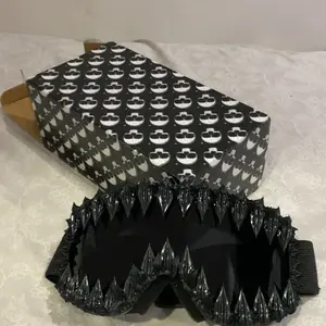 Wow, looks great. The spiky things are rubber but look awesome and good quality. The goggles let you see like if you're wearing shades, comes with a balaclava(shiesty) and lens cleaner. Overall, looks good and for the price I really can't complain. Recommend