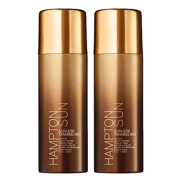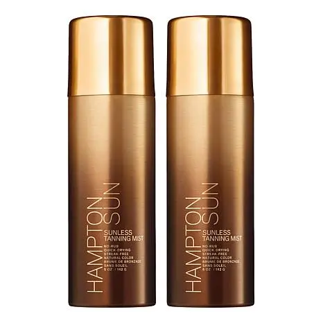 Hampton Sun 2-pack Sunless Tanning Mist What It Is Get a natural-looking sunless tan with this ultra-fine mist that veils skin evenly at any angle.  What You Get (2) 5 oz. Sunless Tanning Mist What It Does No rubbing in required, dries quickly Sprays on clear Natural-looking color, no orange tones Subtly infused with signature Privet Bloom scent Contains erythrulose, which enhances color depth and prolongs wear