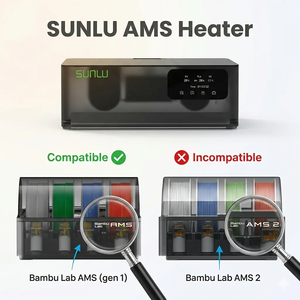 This SUNLU AMS Heater is only compatible with the Bambu Lab AMS Generation 1