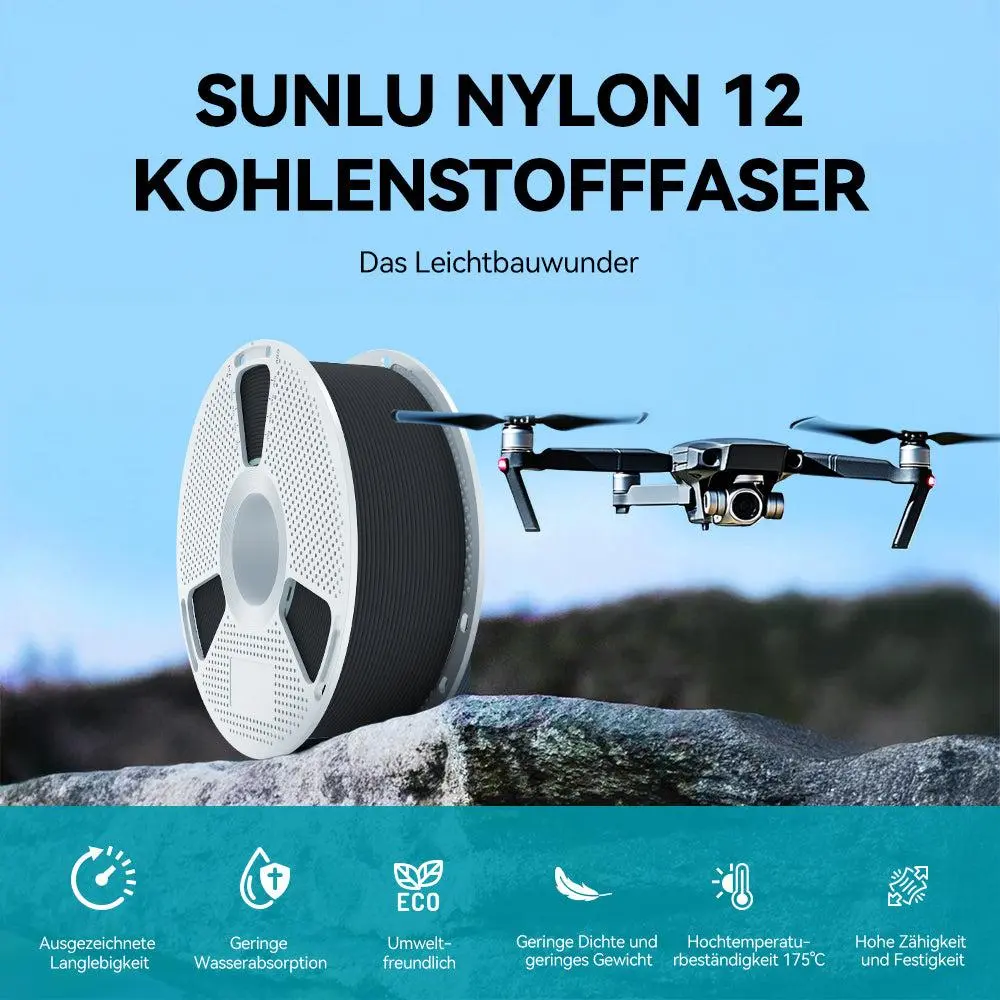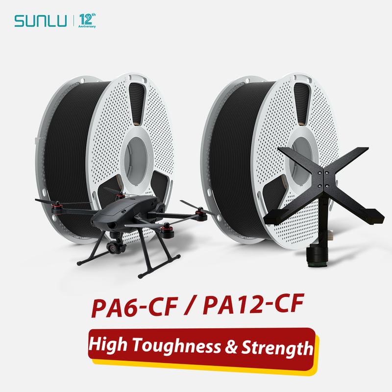 SUNLU offers two high-performance carbon fiber nylon (PA-CF) 3D printer filaments: PA6-CF and PA12-CF.