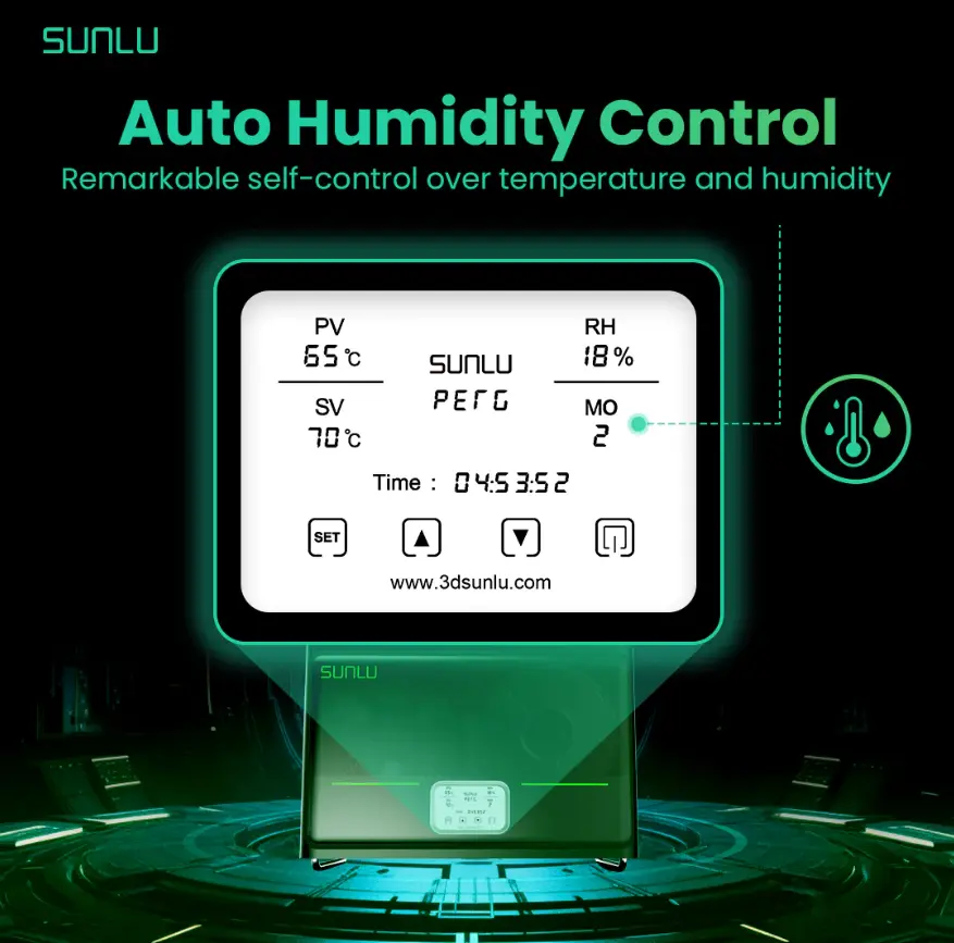 ๐ฆ Adjustable Humidity ๐ฆ - Adjust humidity in the chassis - Automatic start at set value (30%-50%) - Stops at 25% humidity - Meets humidity needs of different consumables
