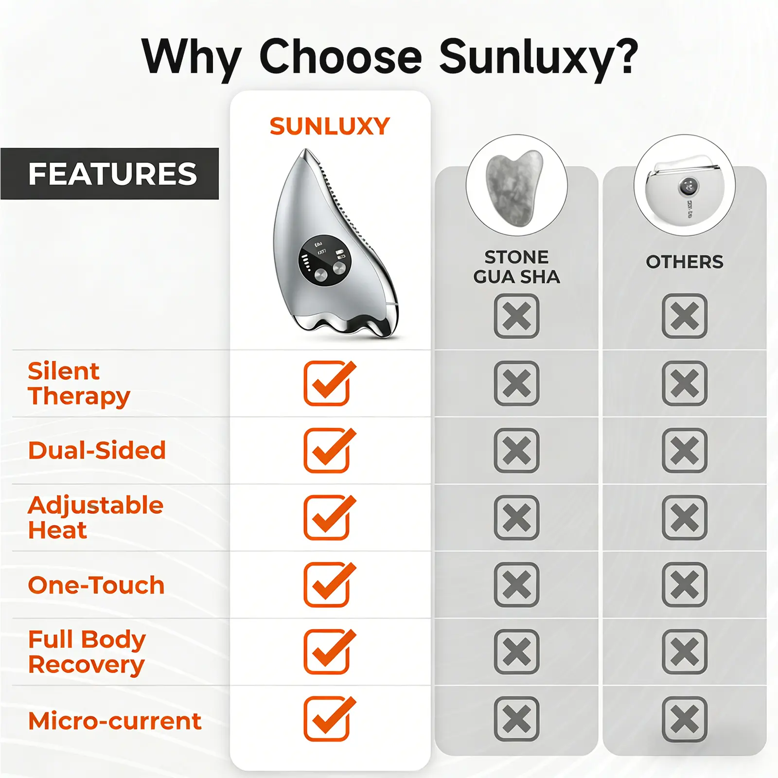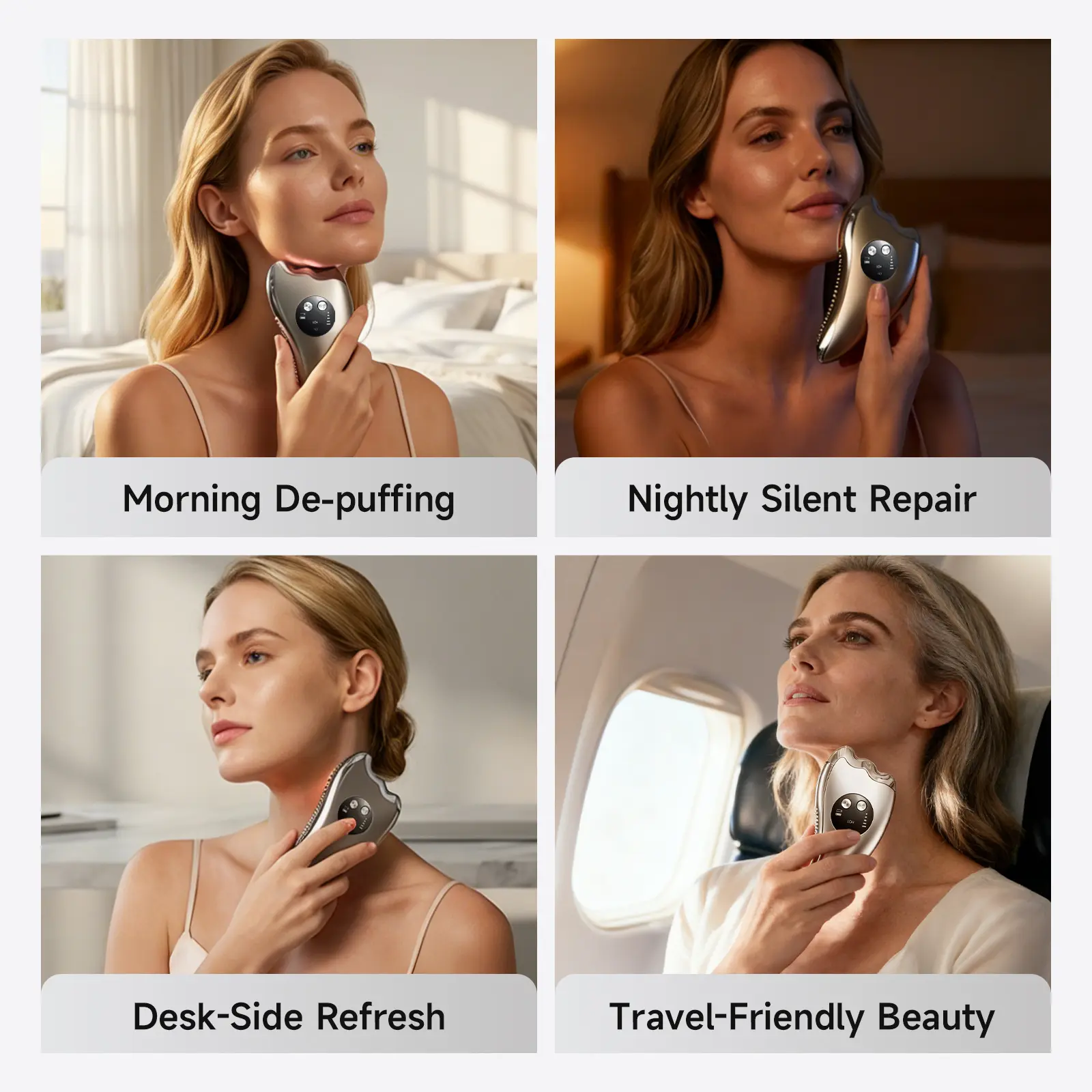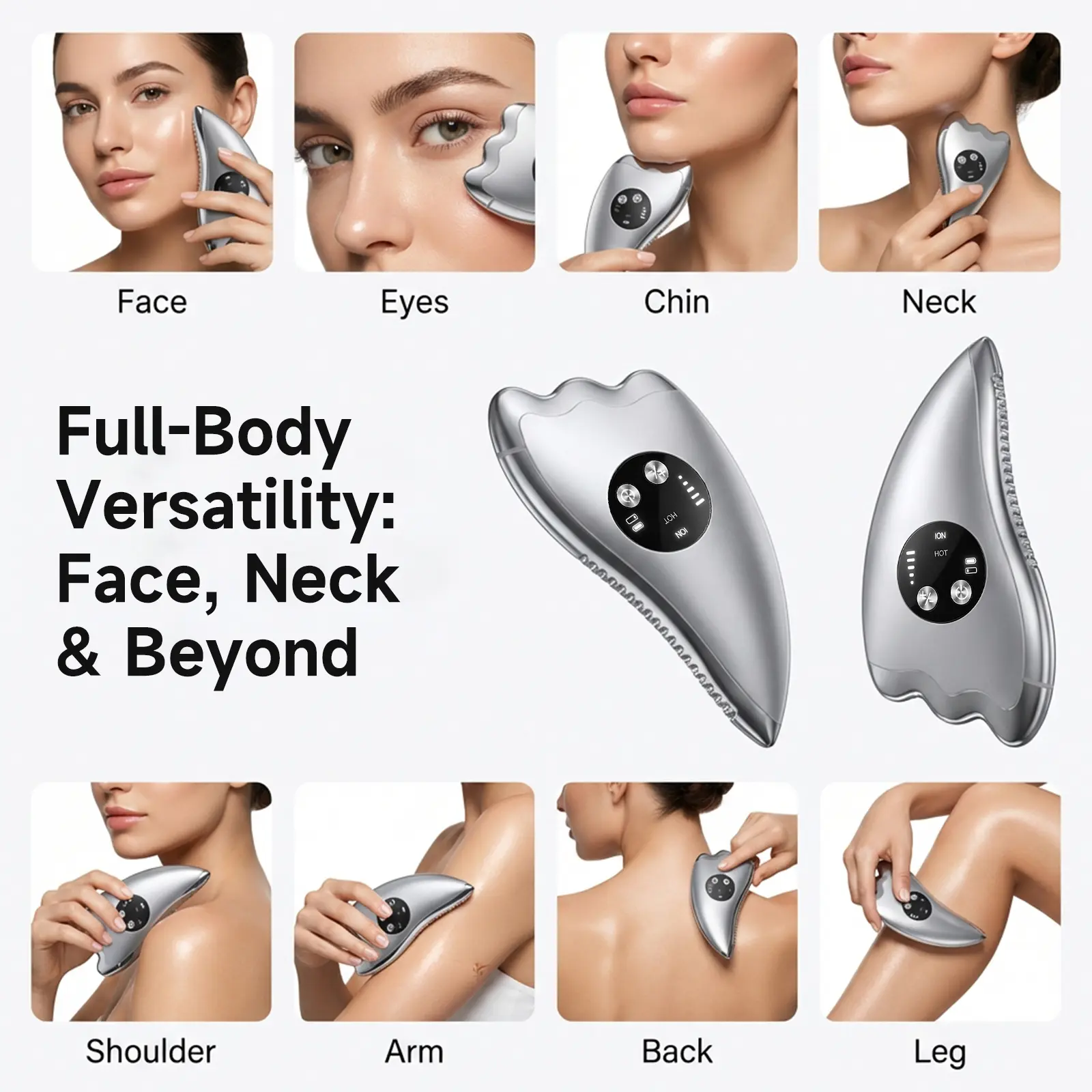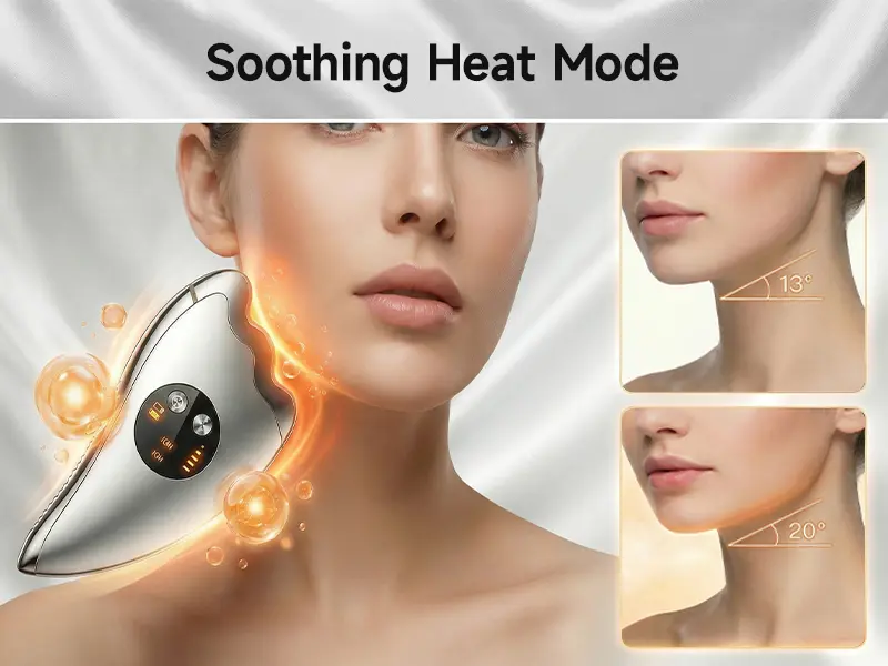 ·【Adjustable Heating Gua Sha】Featuring adjustable temperature settings, this device allows you to tailor the soothing warmth to your skin's comfort level. The gentle heat mimics a luxury spa massage to open pores and soothe tired muscles, significantly boosting the absorption of your favorite serums and oils for a deeper, more effective glow.