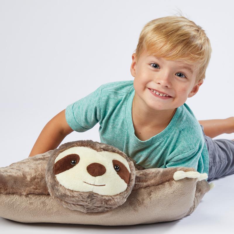 Sunny Sloth is the most cuddly animal/pillow you can find with its soft snuggly fabric. Kids of all ages will enjoy the practicality of everyday use as both, a toy for imaginative play and a pillow for television, bed or travel time. This super-soft plush folding stuffed animal is so cuddly they’ll never want to put it down! This Pillow Pet is an ideal nap-time companion – not to mention a perfect accessory for road trips or airplane rides. Pillow Pets are anything but just another pillow. Starts out as your pal, then unfastens to quickly become a functional pillow! Make bedtime fun! Opens to a comfy pillow. Made of high-quality washable plush fabrics. BPA-free and Phthalates-free materials.