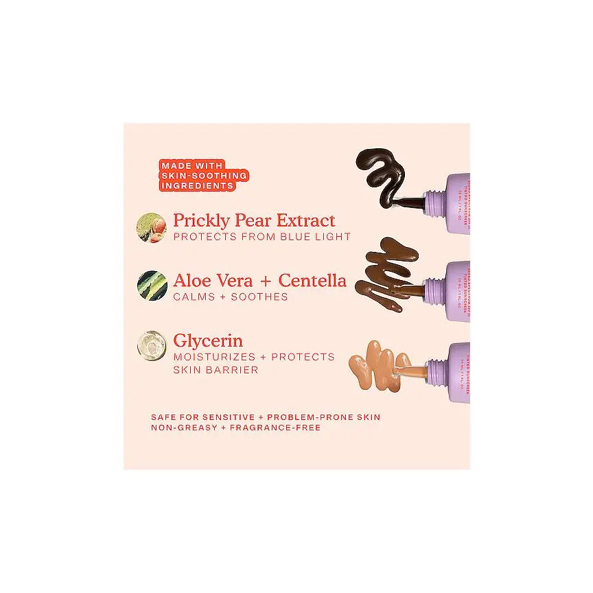 ·ingredients: Active Ingredients: Non-Nano Zinc Oxide, 12.6%. Inactive Ingredients: Water/Aqua/Eau, Isononyl Isononanoate, C9-12 Alkane, Butyloctyl Salicylate, Polyglyceryl-6 Polyricinoleate, Caprylic/Capric Triglyceride, Glycerin, Ethylhexyl Methoxycrylene, Trimethylsiloxysilicate, Mica, Polyglyceryl-2 Isostearate, Sodium Chloride, Phenoxyethanol, Disteardimonium Hectorite, Polyglyceryl-3 Polyricinoleate, Polyhydroxystearic Acid, Coco-Caprylate/Caprate, Isostearic Acid, Lecithin, Polyglyceryl-6 Polyhydroxystearate, Jojoba Esters, Ethylhexylglycerin, Sodium Phytate, Aloe Barbadensis Leaf Water, Centella Asiatica Extract, Opuntia Tuna Fruit, Salvia Officinalis (Sage) Extract, May Contain (+/-): Iron Oxides (Ci 77491, Ci 77492, Ci 77499), Titanium Dioxide (Ci 77891)., *Disclaimer: Ingredients are subject to change at the manufacturer's discretion. For the most complete and up-to-date list of ingredients, refer to the product packaging.