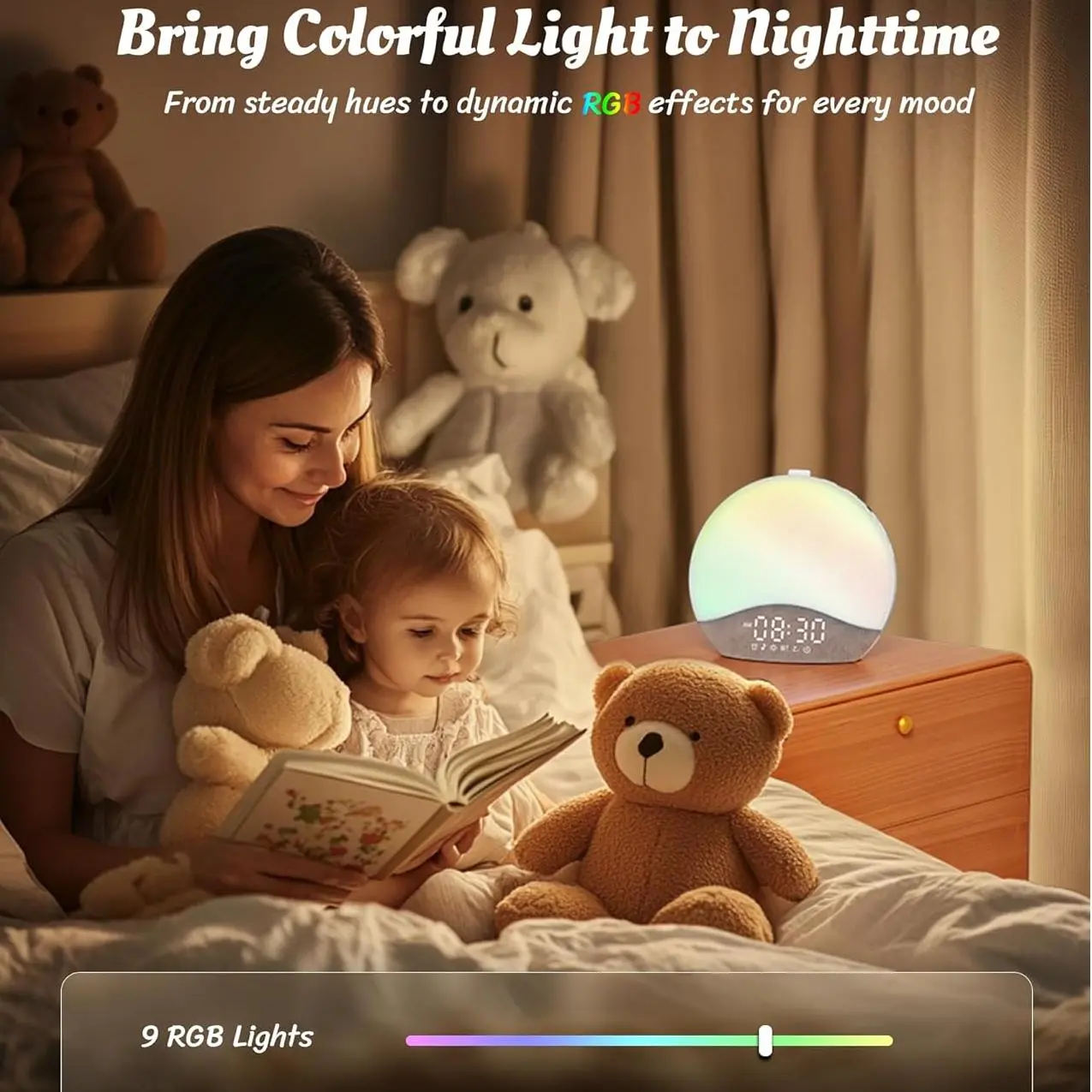 I’ve been waking up so easily and refreshed!!! My dog loves staring at the colors too lol! There’s so many different settings for colored lights, sunrises, alarms, music, Bluetooth, and sleep sounds! Works great!!!