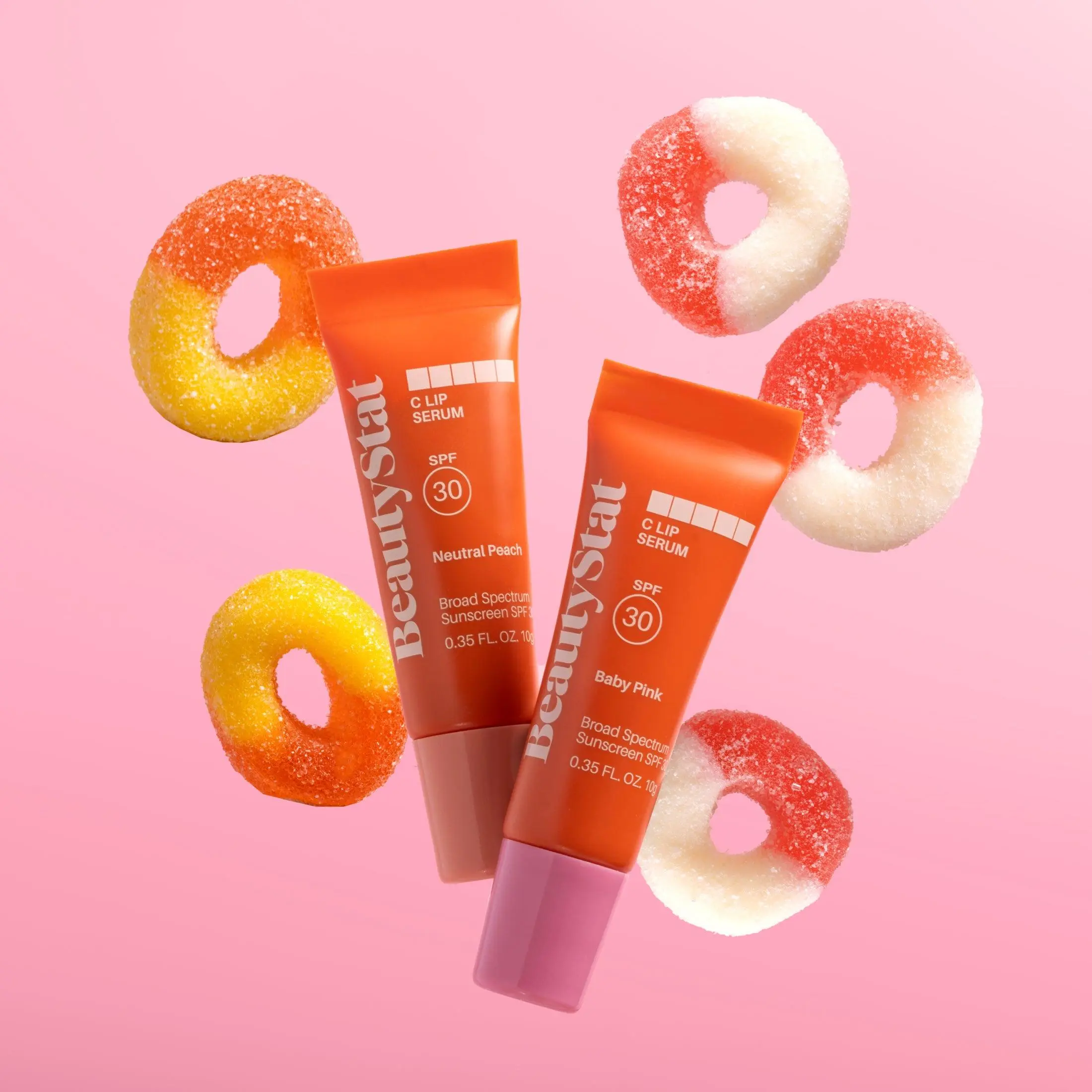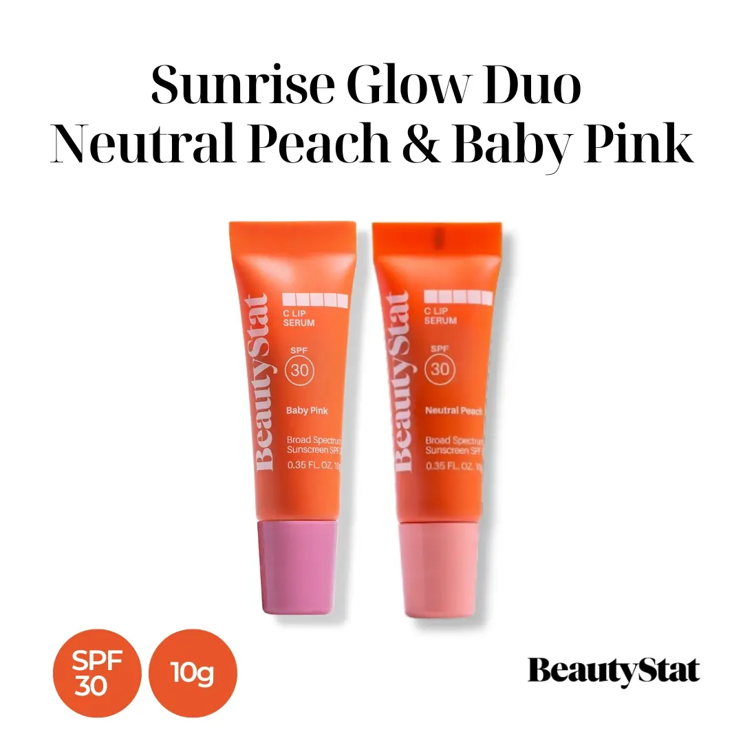 Discover our C Lip Serum duo featuring both universally flattering shades: Neutral Peach and Baby Pink. This innovative formula offers mineral SPF 30 protection while delivering the brightening power of pure L-Ascorbic Acid and advanced peptides for visibly plumper lips. The silky, non-sticky texture provides lasting hydration with glucosamine and sodium hyaluronate, improving lip texture and tone with every application. Experience BeautyStat's lip care with protective benefits in a orange vanilla dreamsicle flavor.