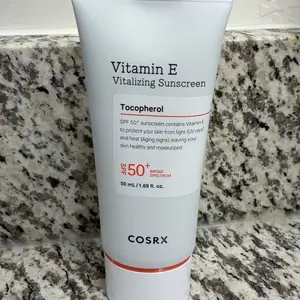 Perfect size goes on smooth 50+ sunscreen with Vitamin E!!!! Love ❤️ it