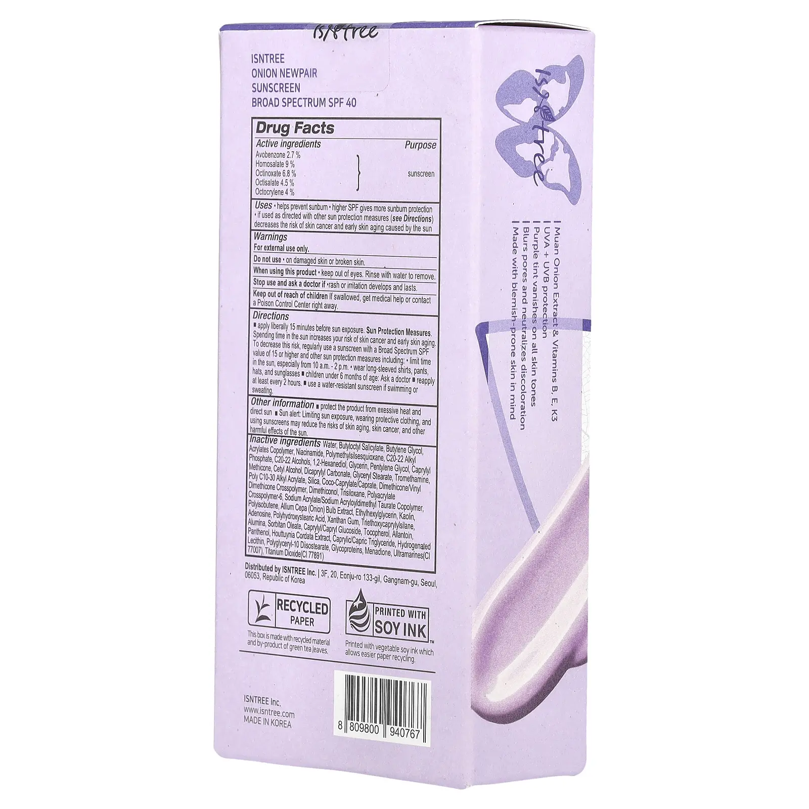 ISNtree Purple Protector, Onion Newpair Sunscreen, SPF 40, 1.69 fl oz (50 ml)